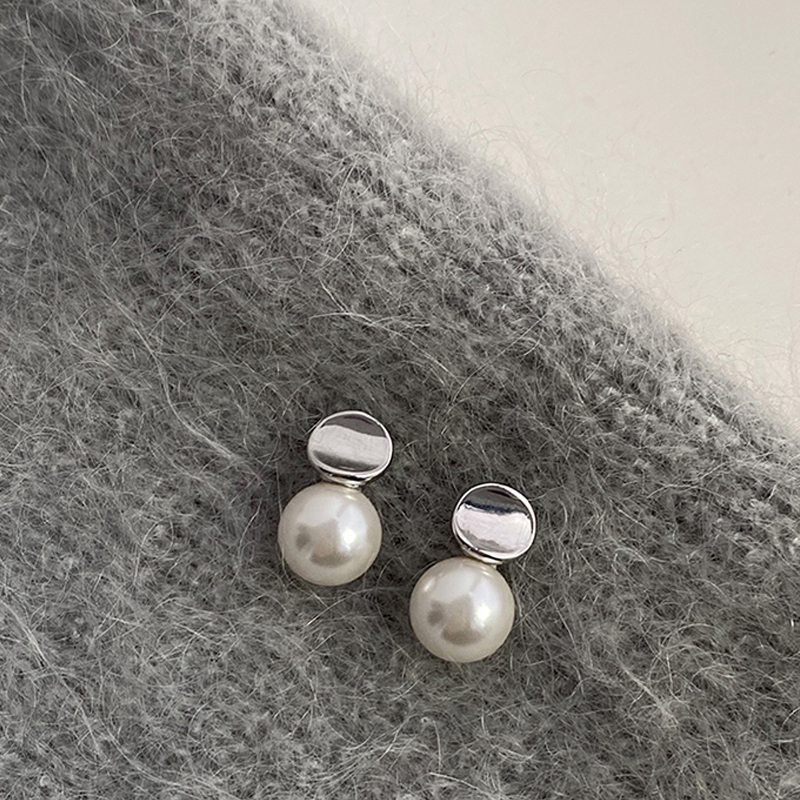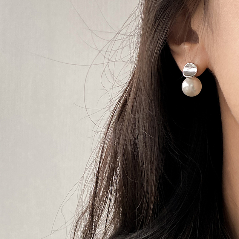 925纯银凹片珍珠耳钉女韩系个性百搭耳环ins风学生潮轻奢小巧耳饰