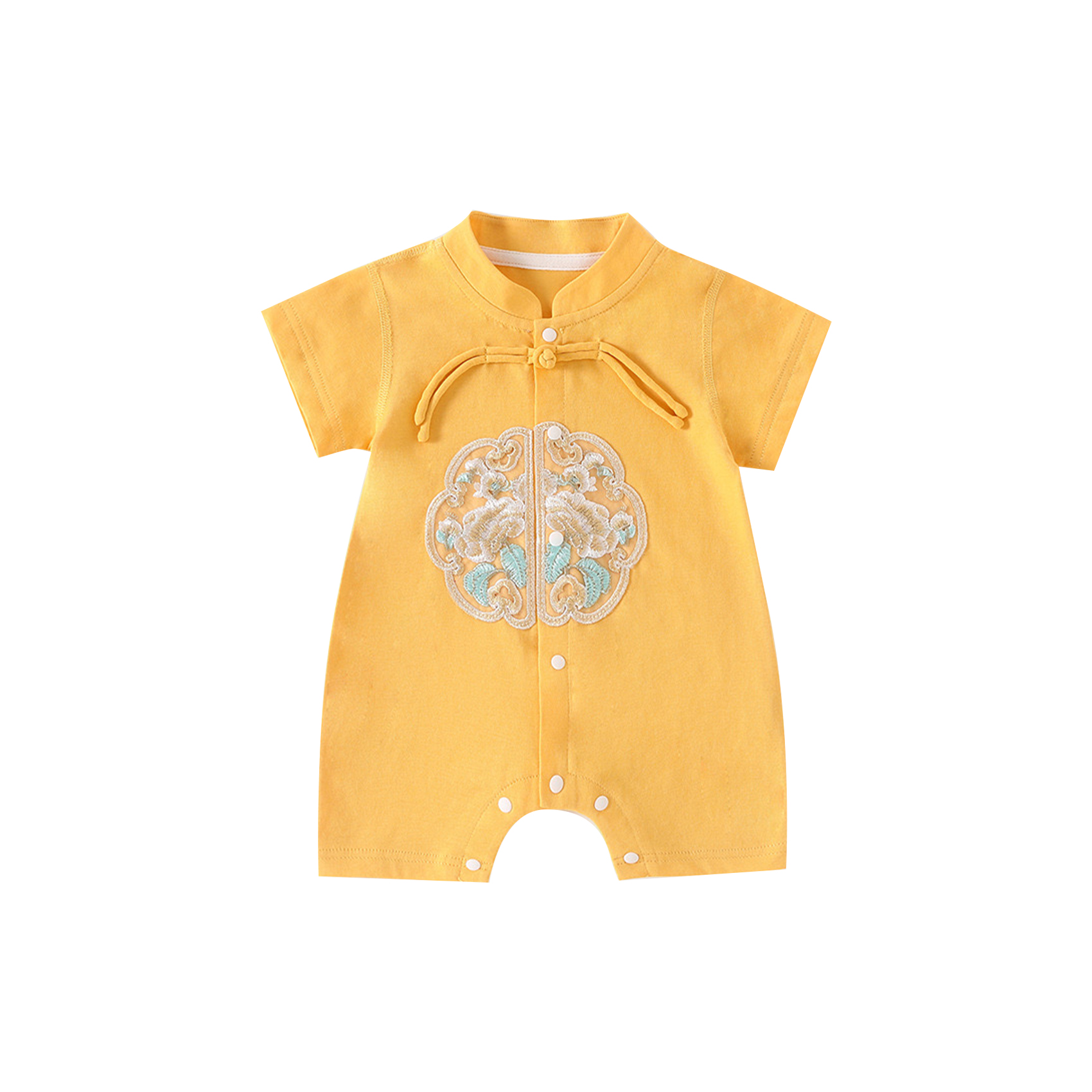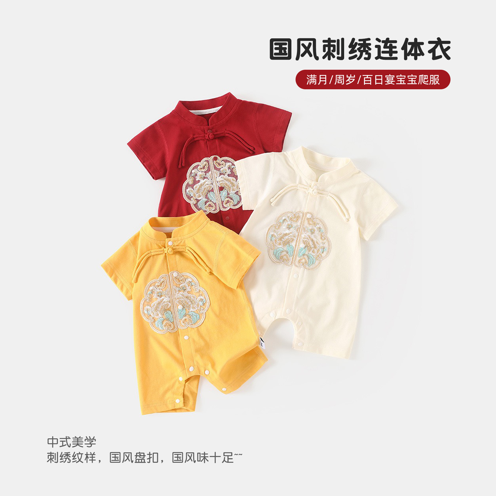 新生儿婴儿夏季衣服国风宝宝短袖连体衣夏装满月周岁外出哈衣爬服