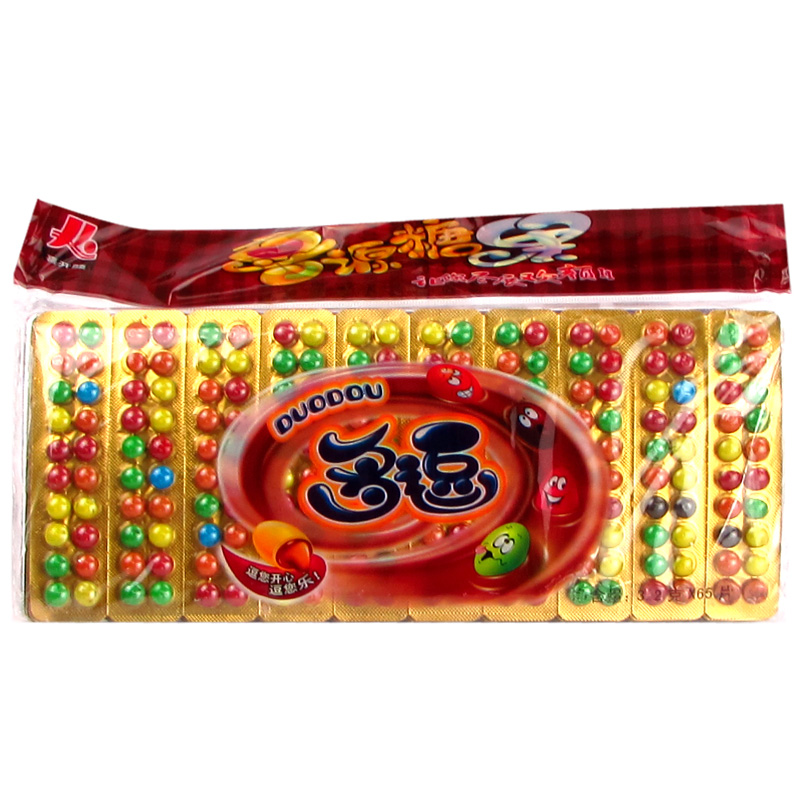 多逗巧克力豆脆皮夹心纽扣型代可可脂彩虹石头糖豆童年回忆零食