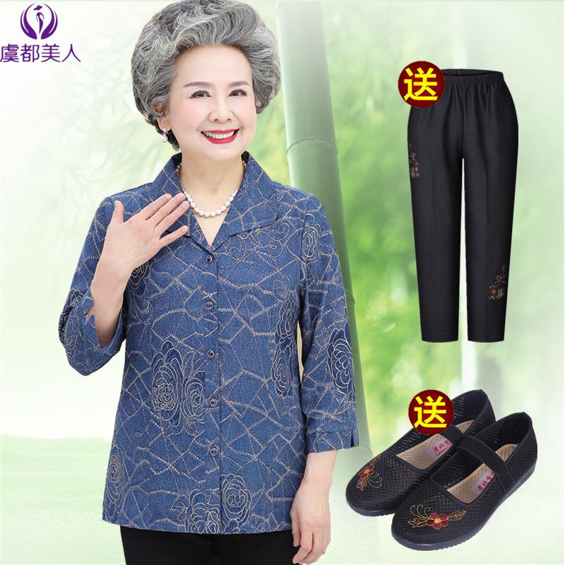 老年人套装女60-70岁妈妈装长袖夏装奶奶衬衫短袖薄款老人衣服80