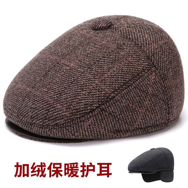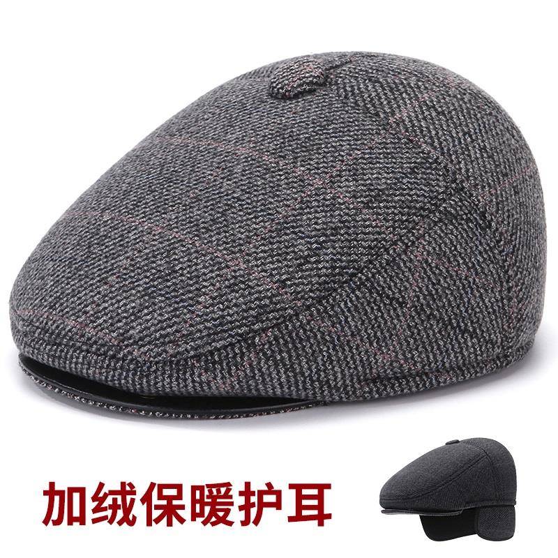 秋冬季男士新款中老年人帽子天爸爸鸭舌帽爷爷加绒护耳保暖1009n