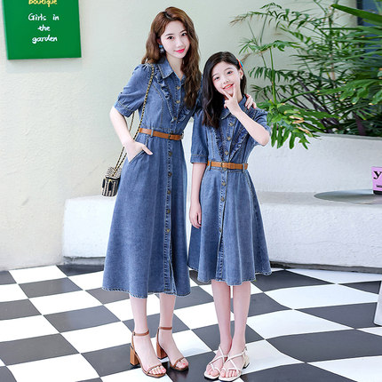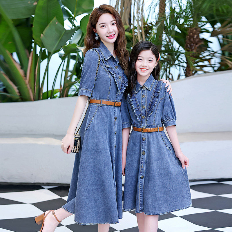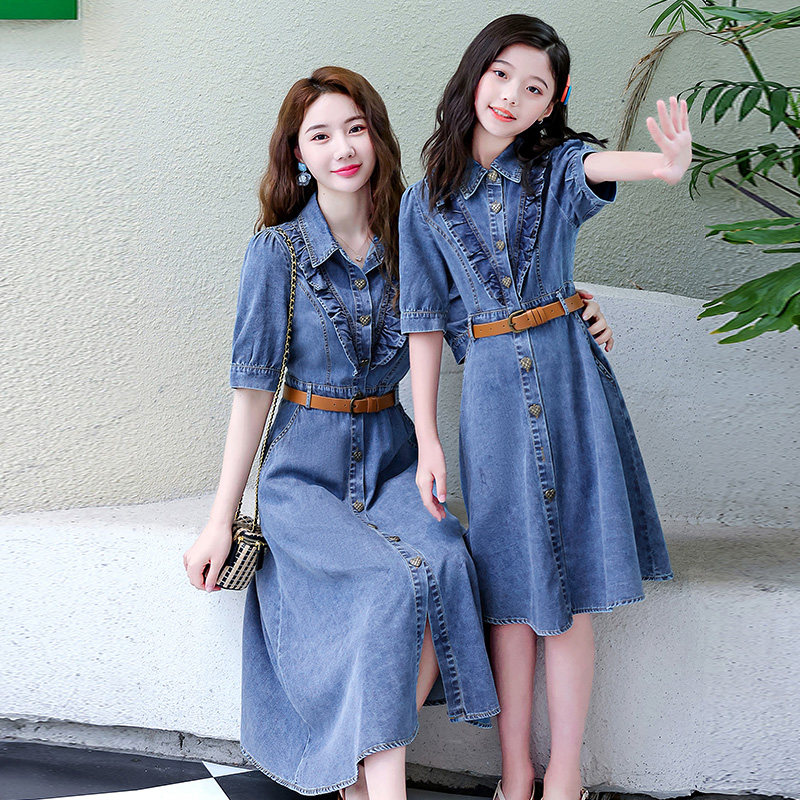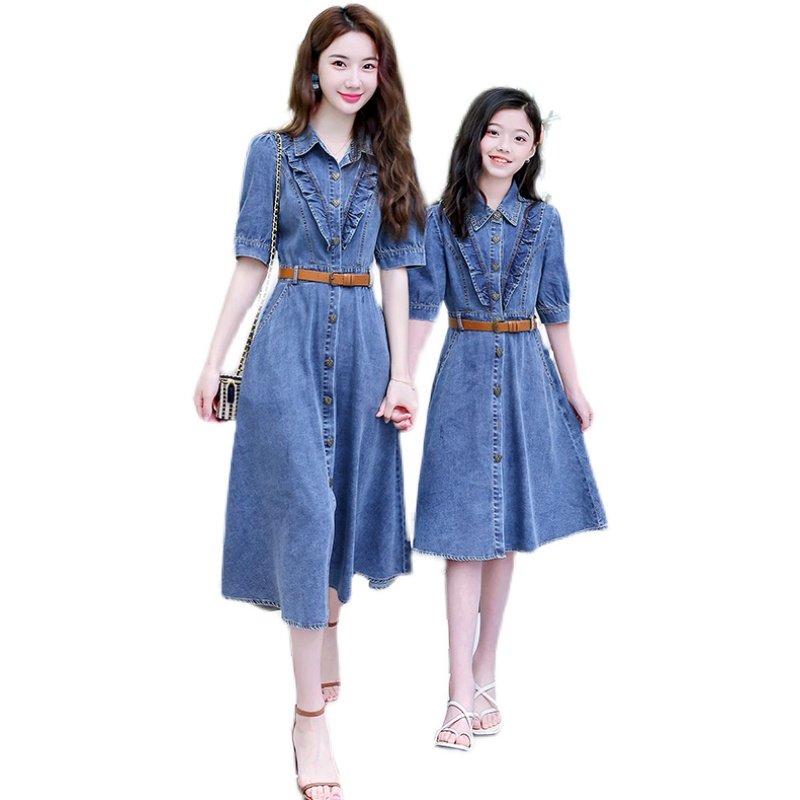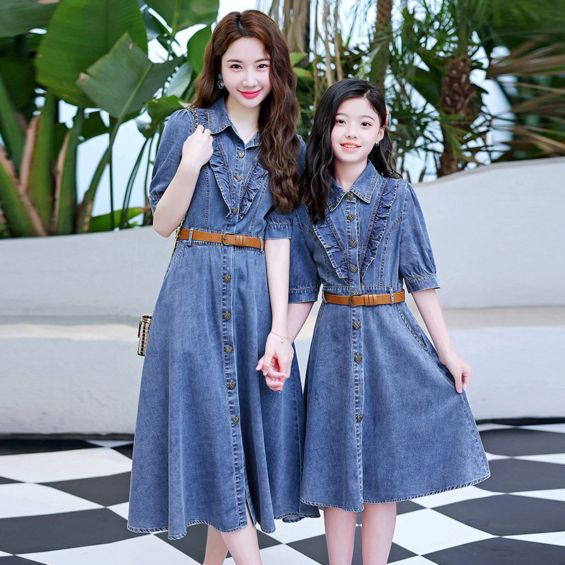 不一样高端亲子装洋气牛仔裙u短袖女童连衣裙2023夏装新款母女装