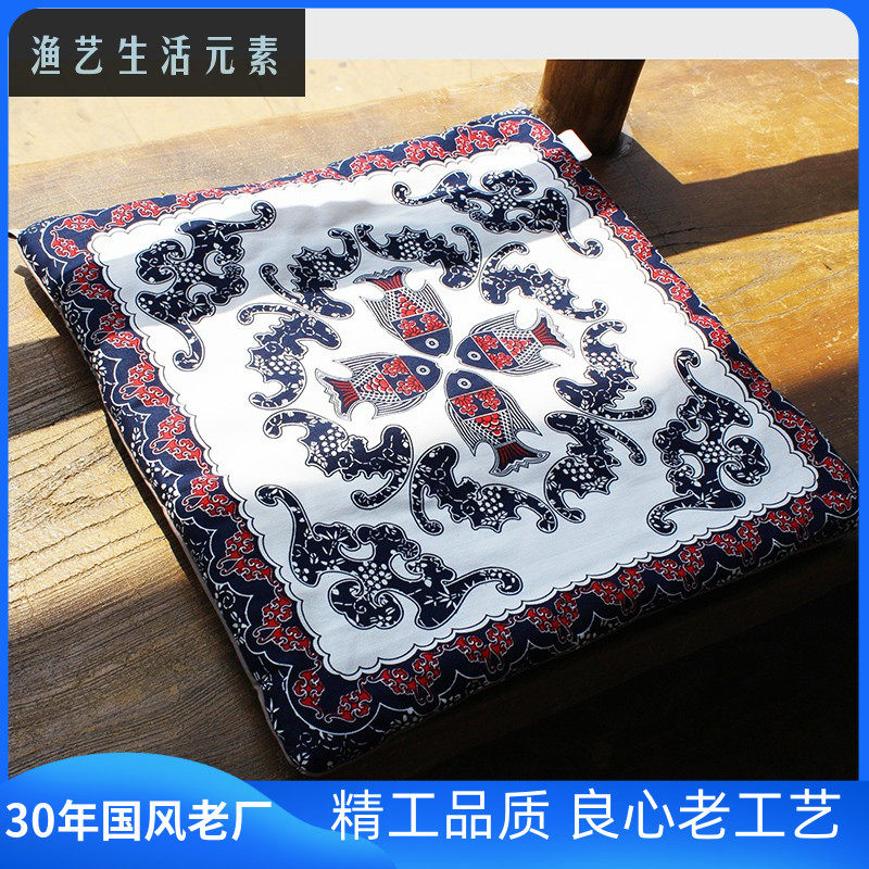 布络坐垫 中式手工纯棉布艺 餐椅垫榻榻米垫车座沙发垫 富贵有鱼