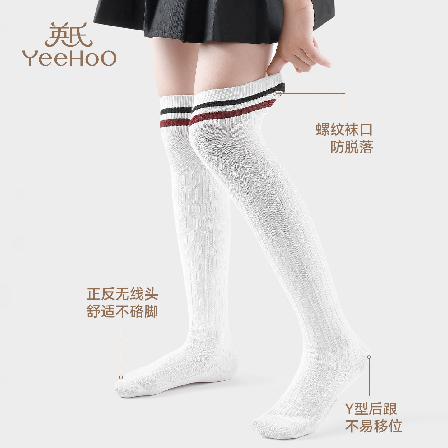 英氏儿童袜子女童小腿袜堆堆袜中大童中筒袜四季款长筒过膝袜