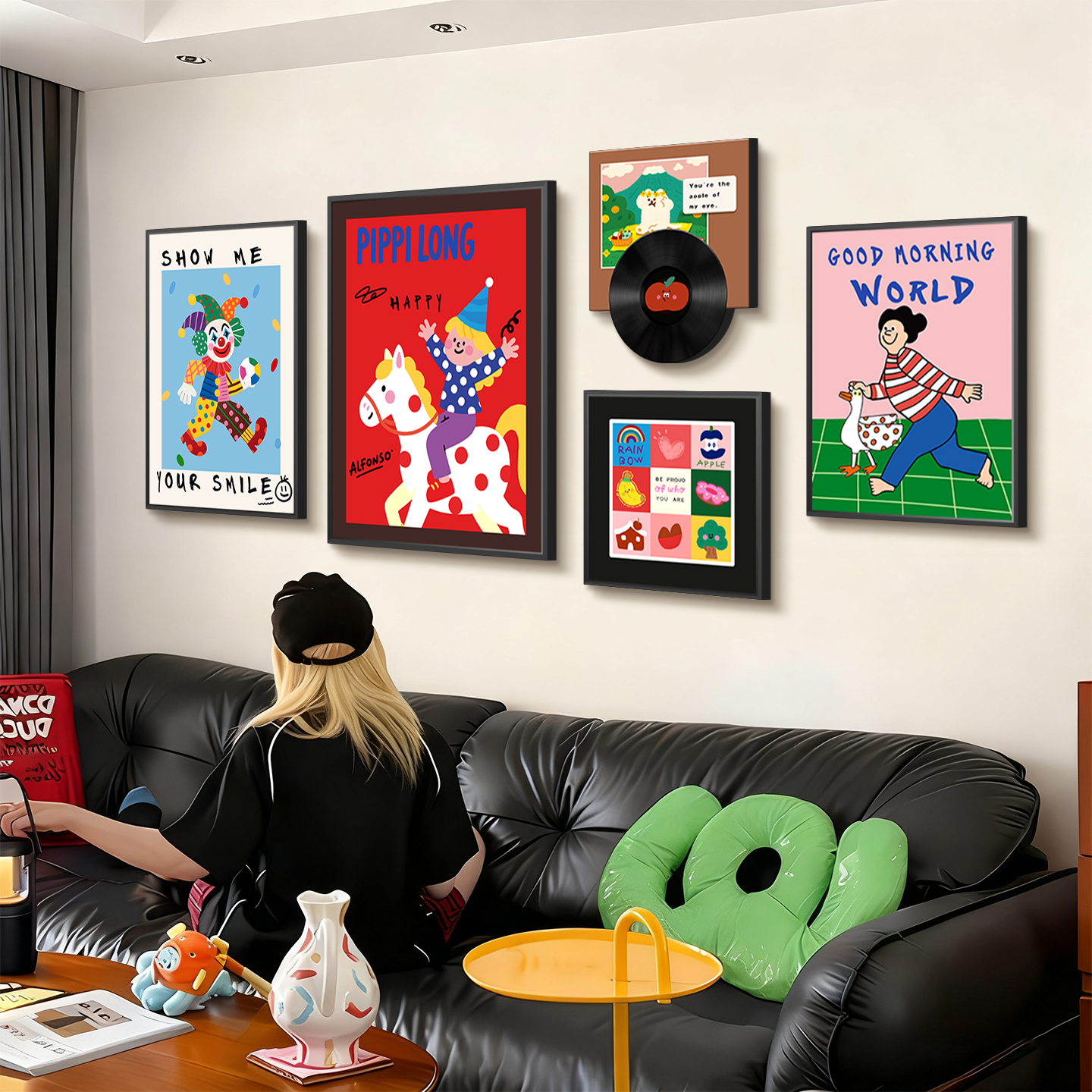 多巴胺客厅装饰画沙发背景墙挂画卡通儿童房卧室小众艺术组合壁画