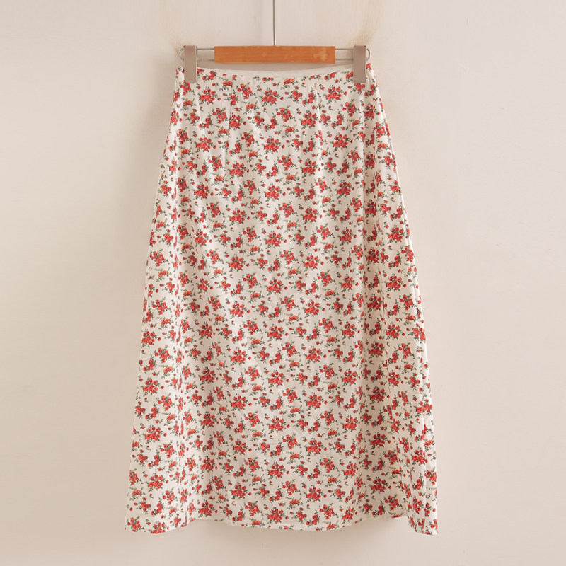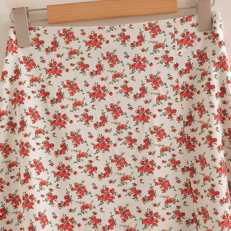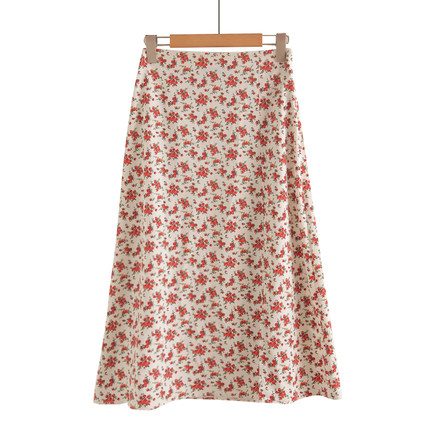 高腰复古碎花半身裙女2025春夏新款雪纺显瘦A字裙中长款打底裙子