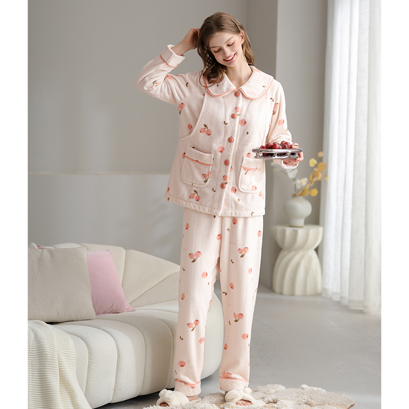 芬腾珊瑚绒月子服秋冬季加厚保暖孕妇睡衣产后喂奶哺乳家居服套装