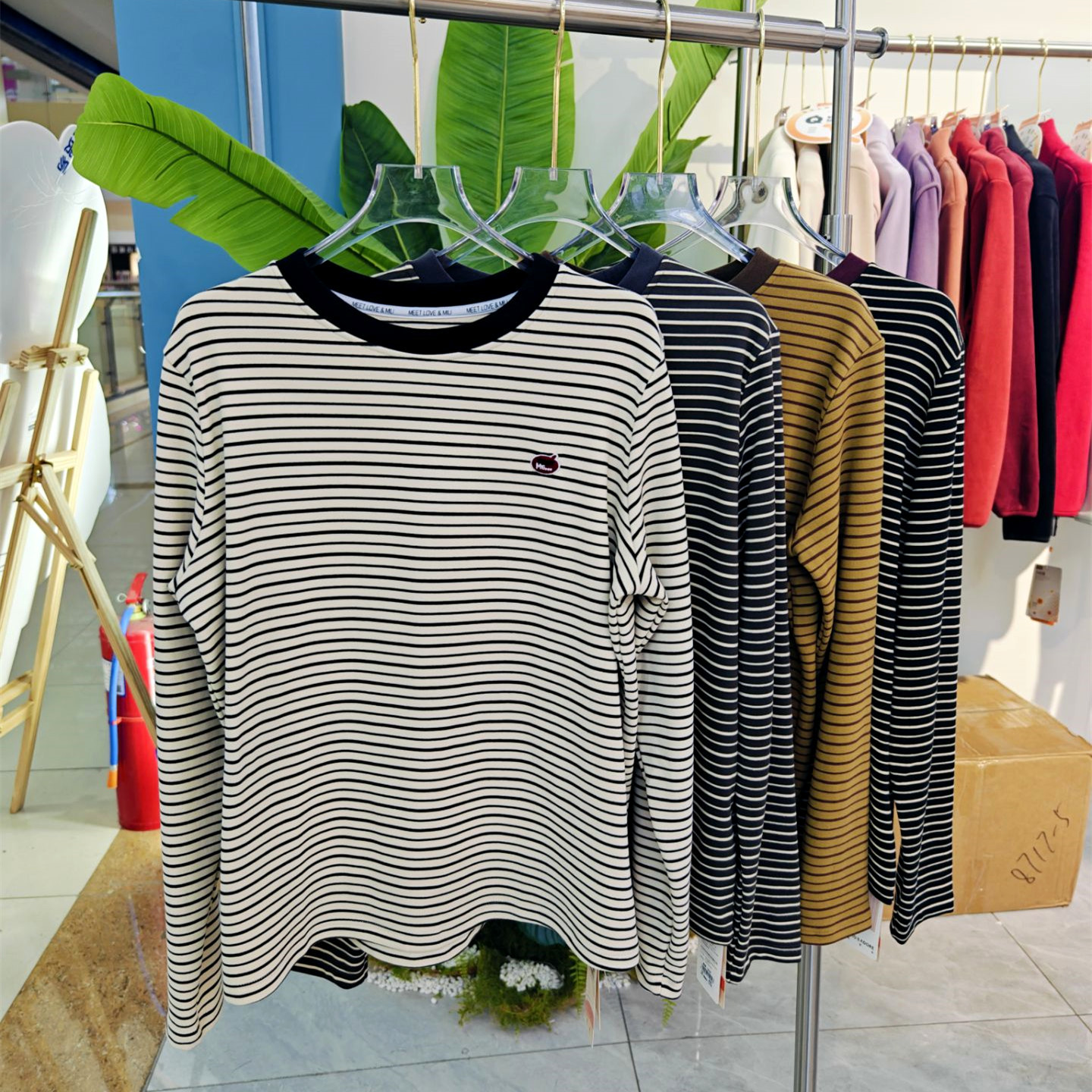 俏安朵2025秋冬新款5949女圆领长袖经典条纹双面暖绒毛针织打底衫