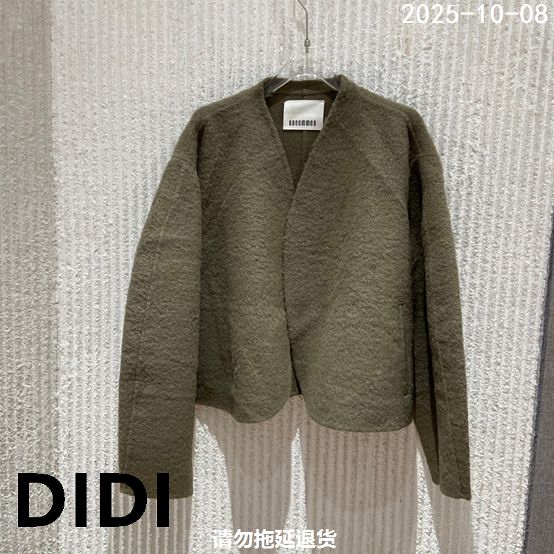 欧洲站2025秋冬季新款净版纯色V领短款毛呢外套女长袖上衣559130