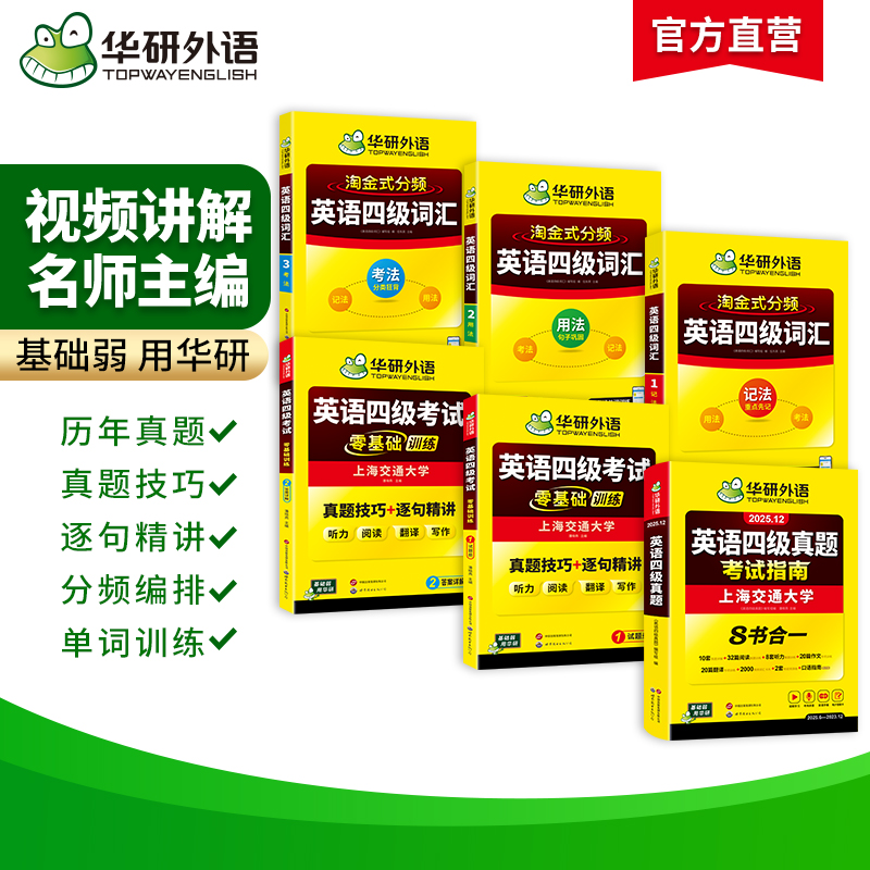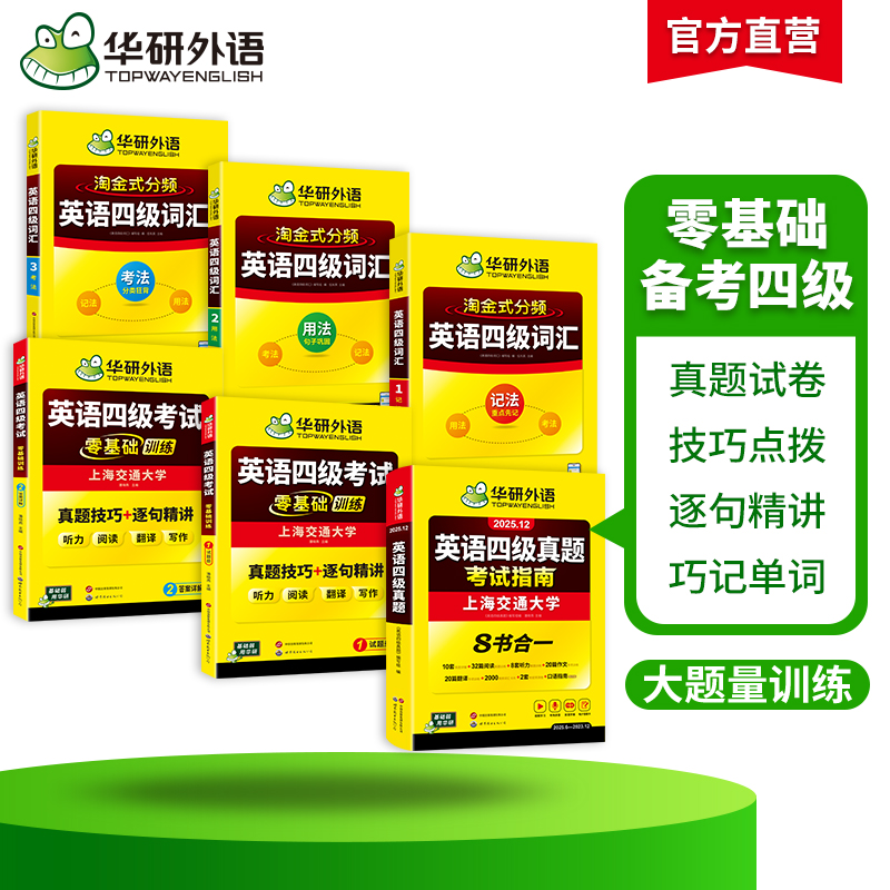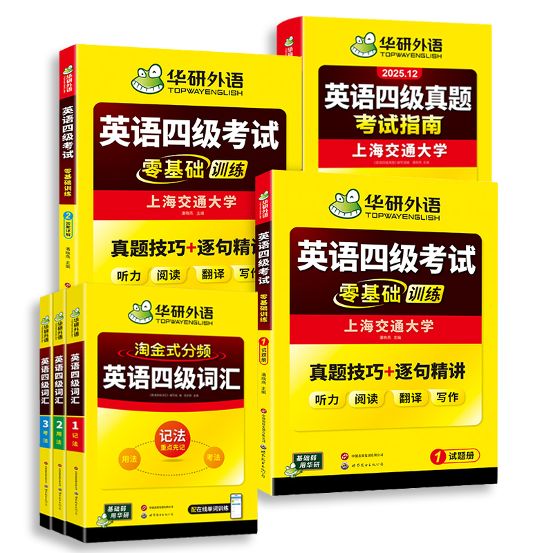 华研外语四级英语备考2025考试真题指南词汇零基础训练套装大学英语历年真题卷单词听力阅读翻译与专项训练书四六级口语作文写作