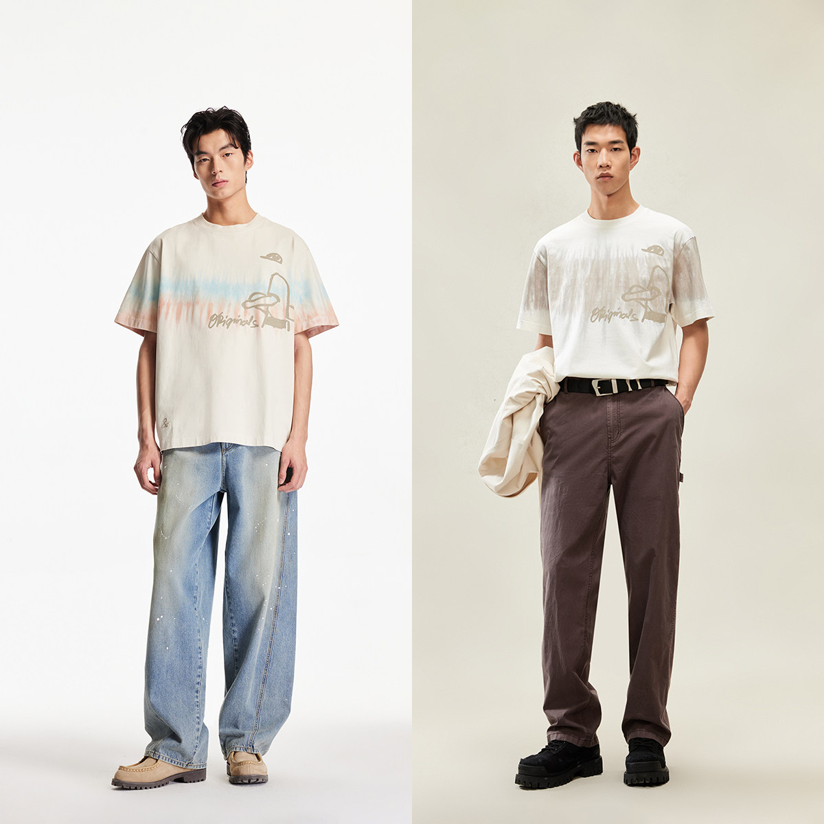 杰克琼斯男装秋季新款扎染印花宽松纯棉舒适百搭舒适圆领短袖T恤
