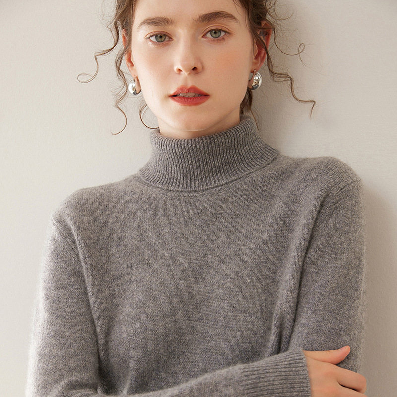 鄂尔多斯市双股加厚高翻领羊绒衫女100%纯山羊绒毛衣女针织打底衫