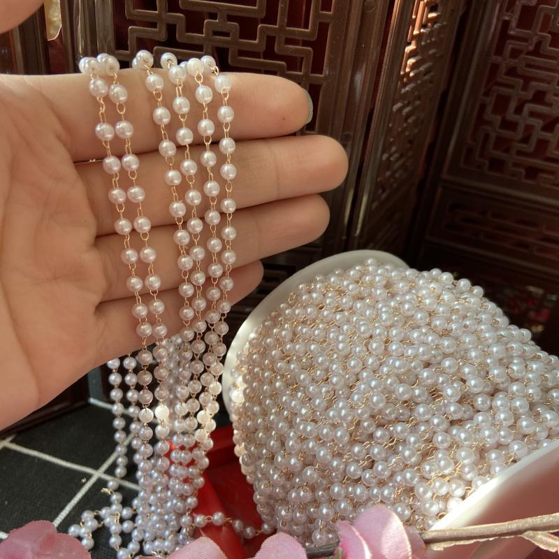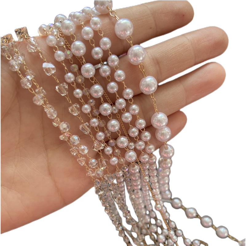 珍珠链条DIY手工配件 仿珍珠链条配件古风发簪超仙水晶头饰材料