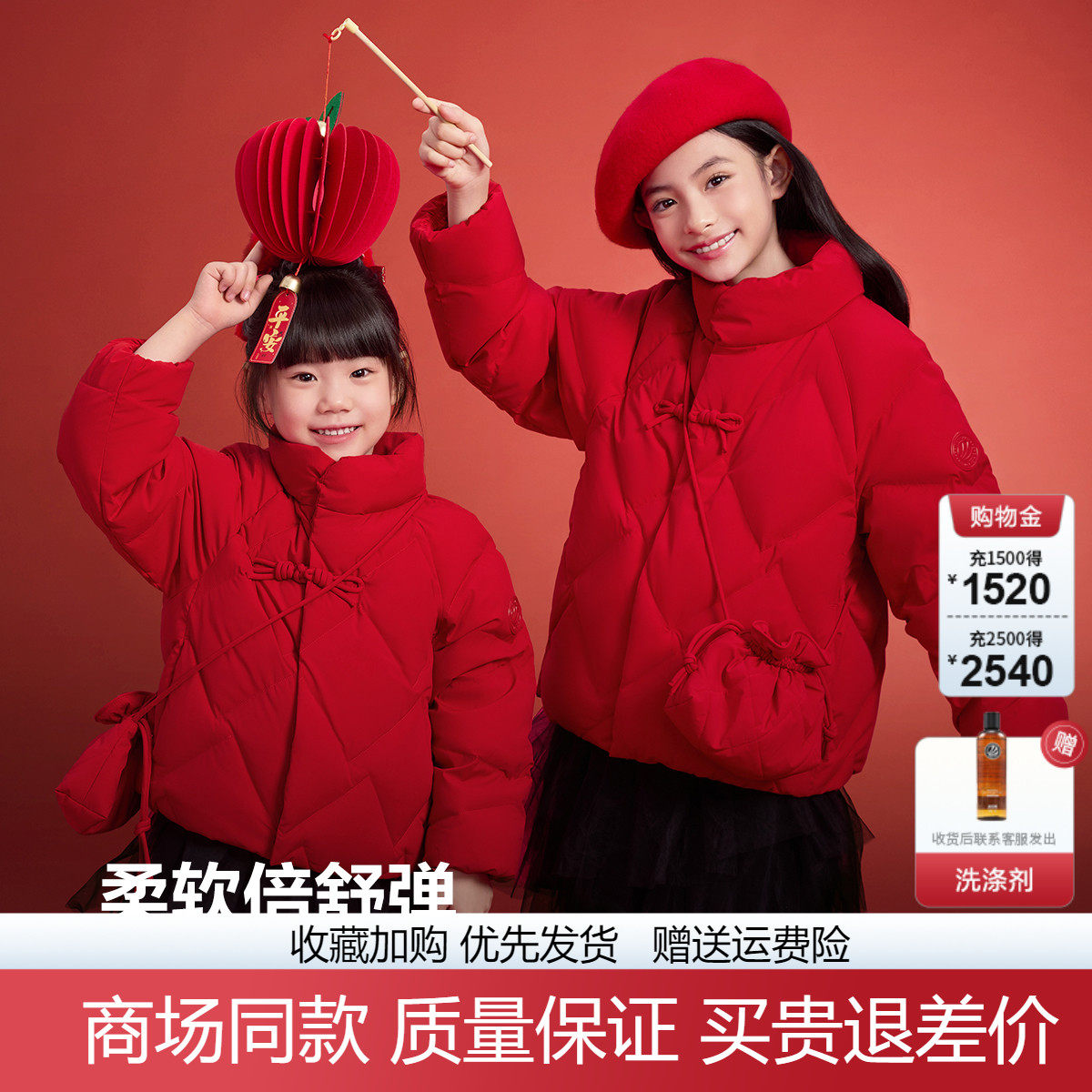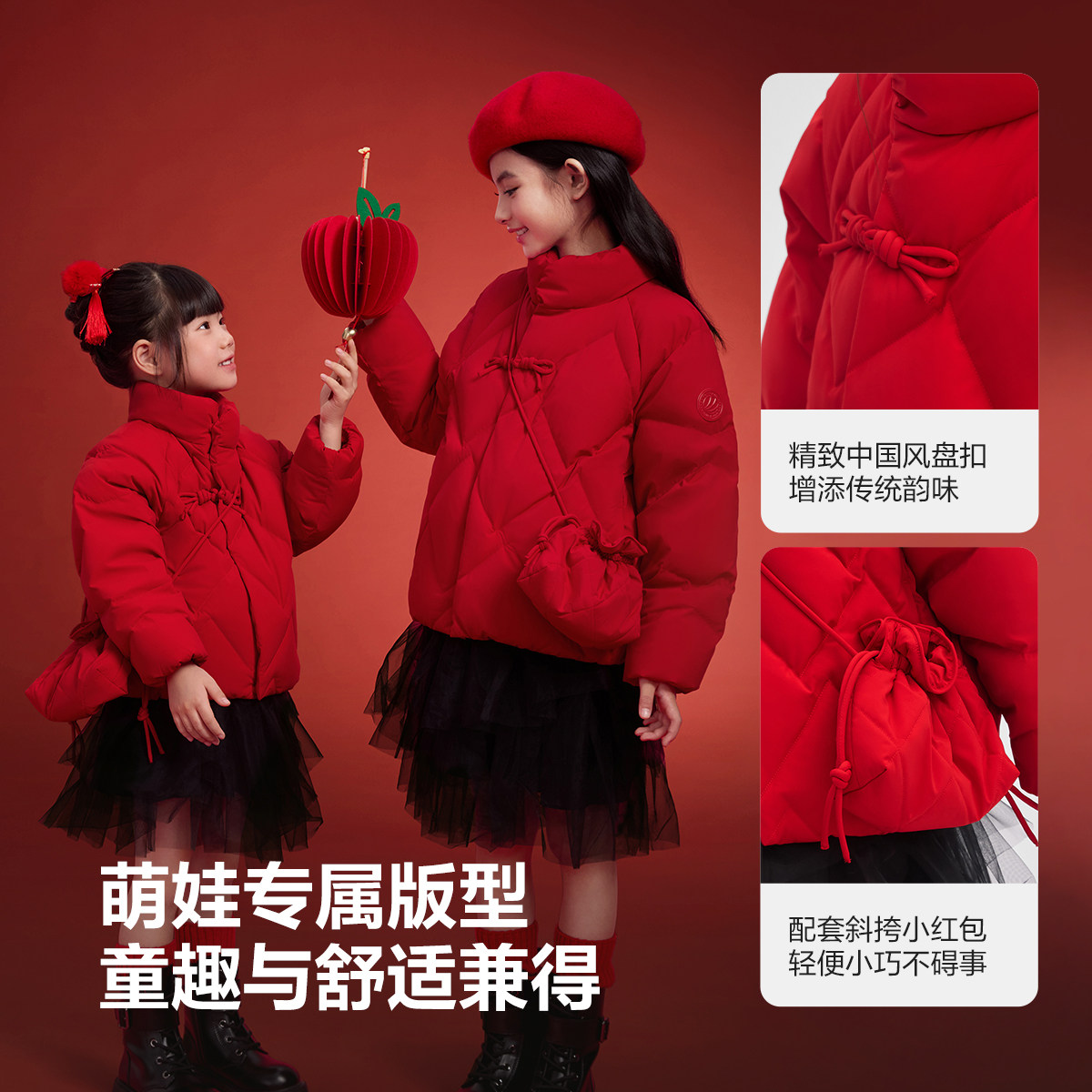 波司登中国风女童新年喜庆羽绒服