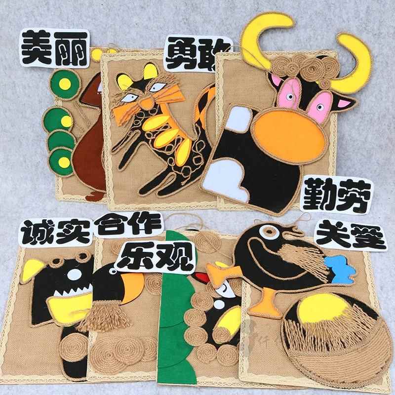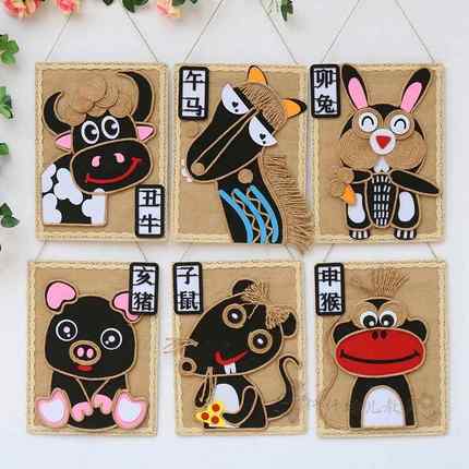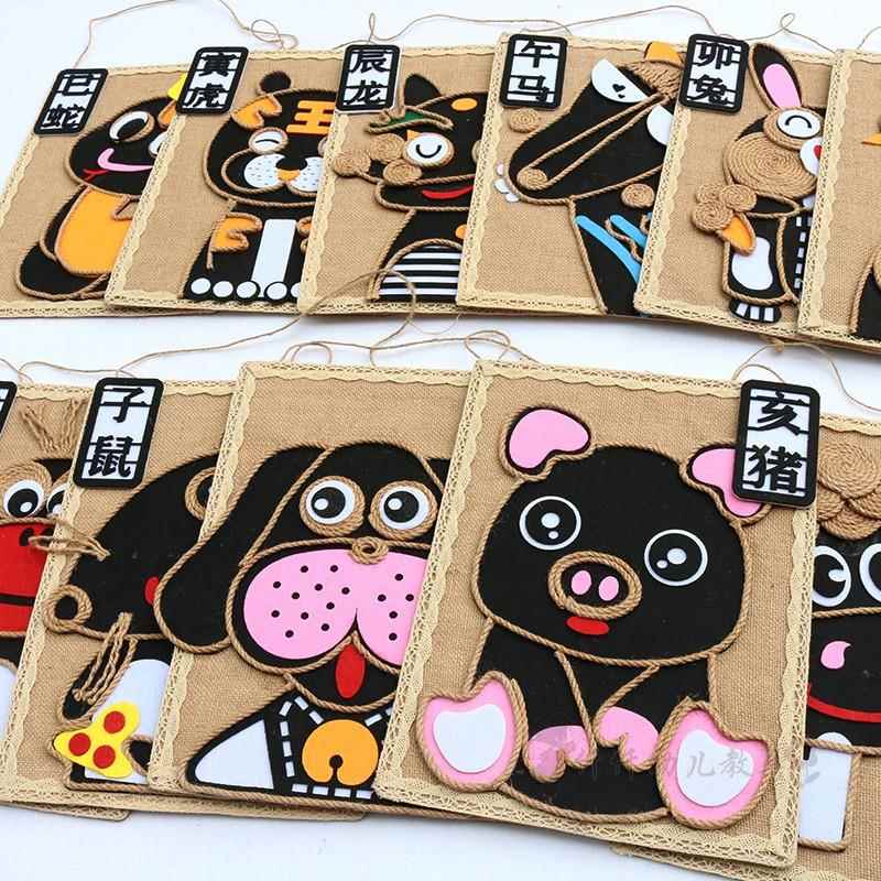 幼儿园创意麻绳十二生肖环创吊饰教室走廊区角卡通动物主题墙挂饰