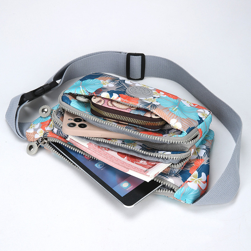 女士印花牛津布大容量防水生意收银收钱腰包妈妈多层实用耐磨胸包