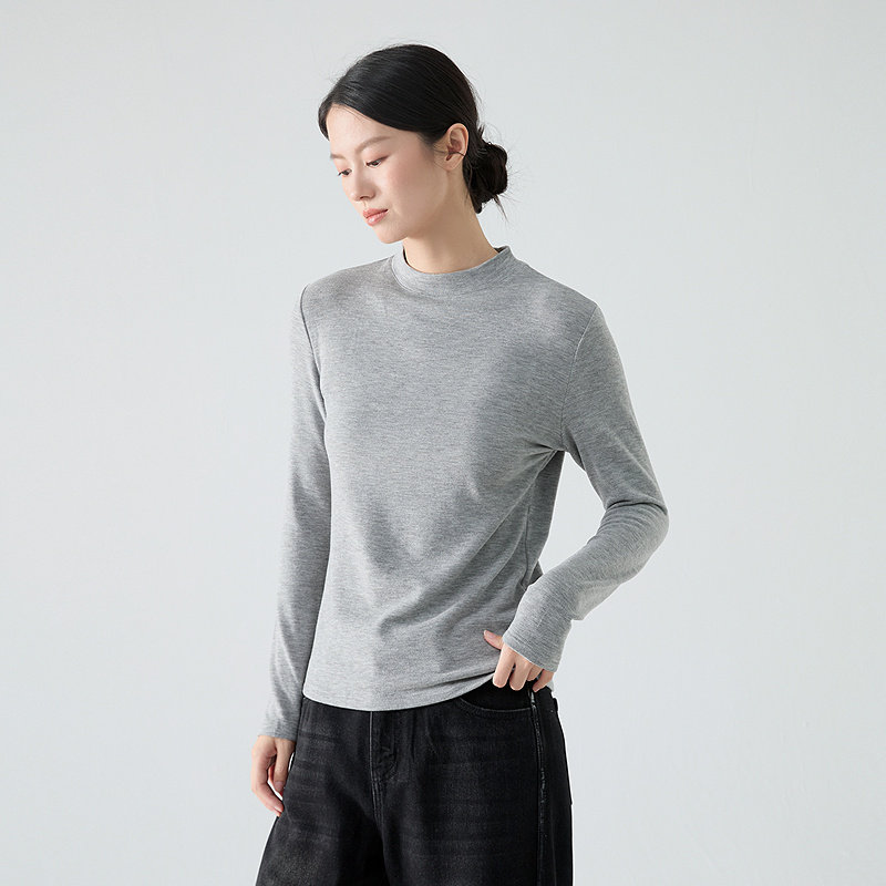Yifini/易菲2025冬季新款修身打底通勤百搭长袖T恤女天丝醋酸上衣