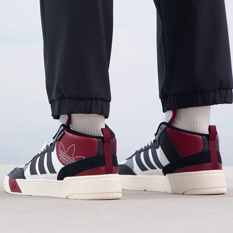 阿迪达斯三叶草高帮男鞋冬季新款酒红篮球鞋休闲耐磨保暖复古板鞋