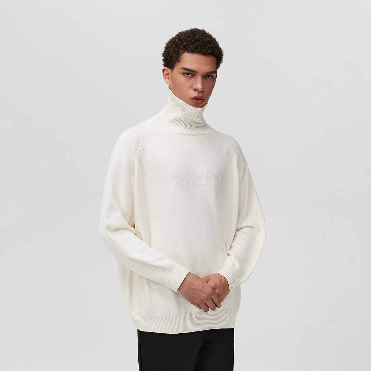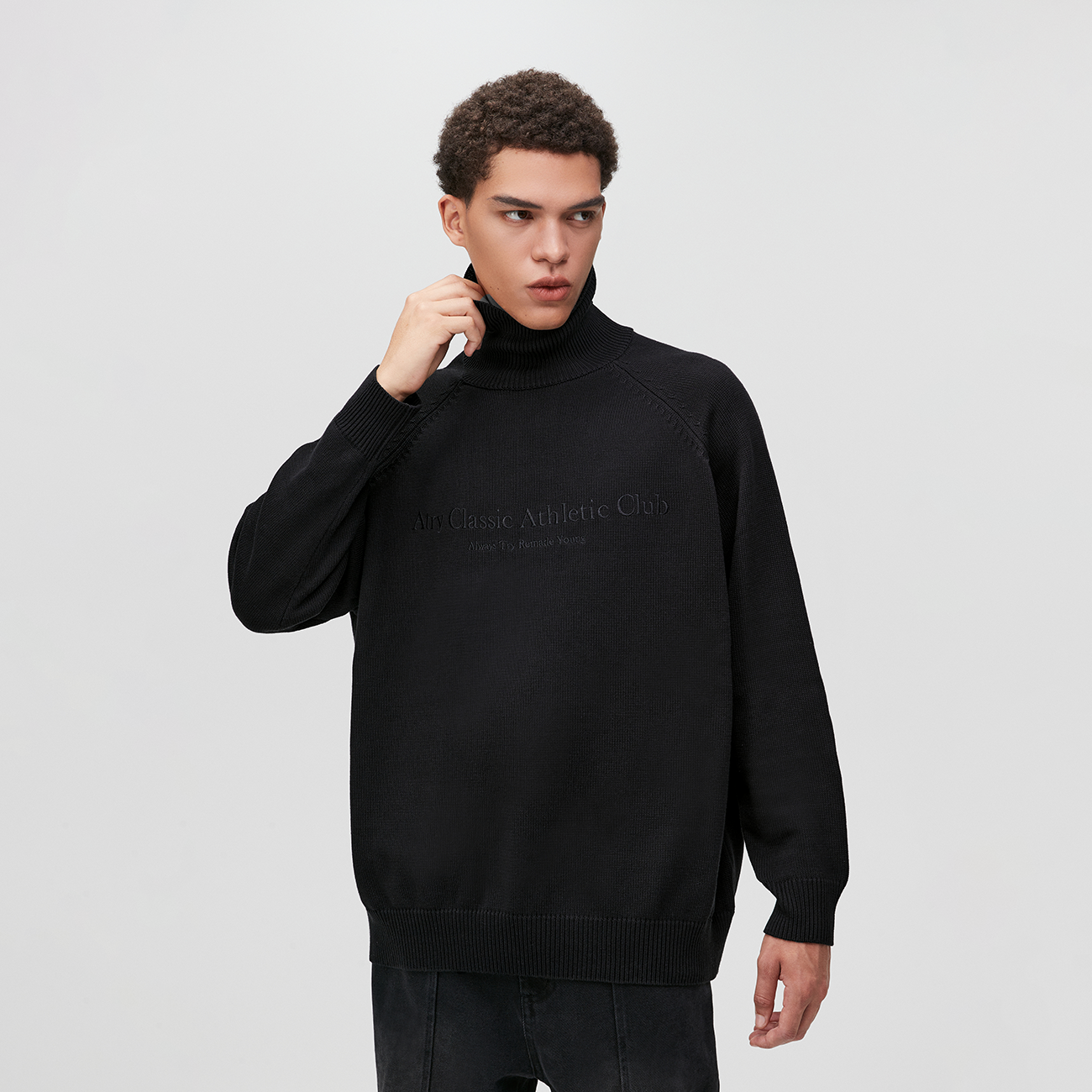 ATRY正面标语顺色绣花高领毛衣针织衫 春秋季国潮牌重磅插肩衣男