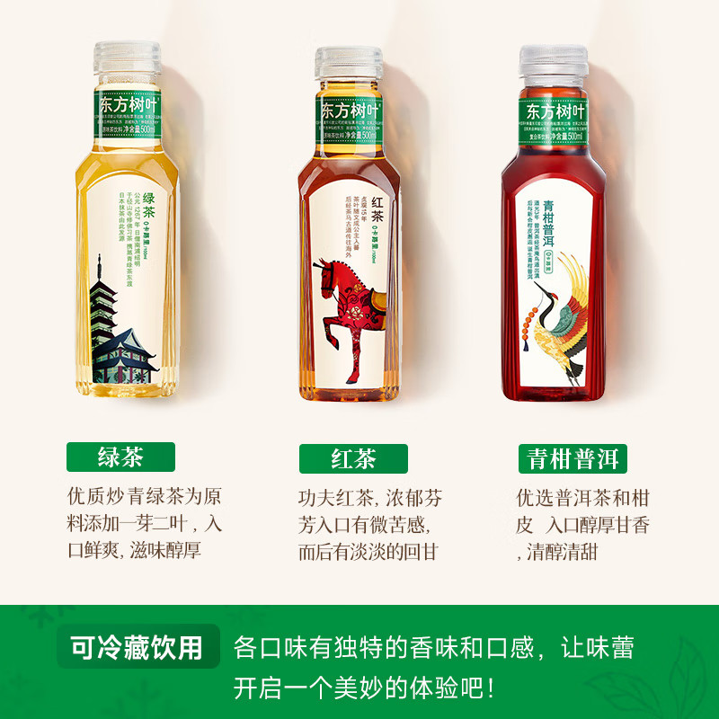 欢乐零食节 农夫山泉东方树叶500ml茉莉花茶青柑普洱绿茶红茶12瓶