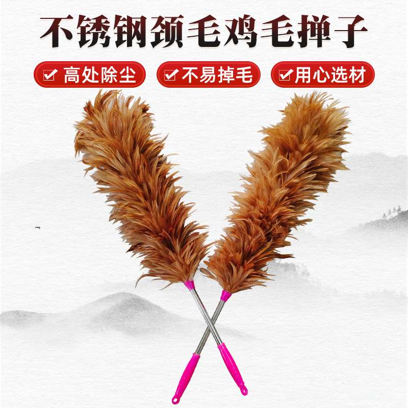 清洁家用鸡毛掸子桌面除尘掸经济实用除尘掸不锈钢柄颈毛鸡毛掸子