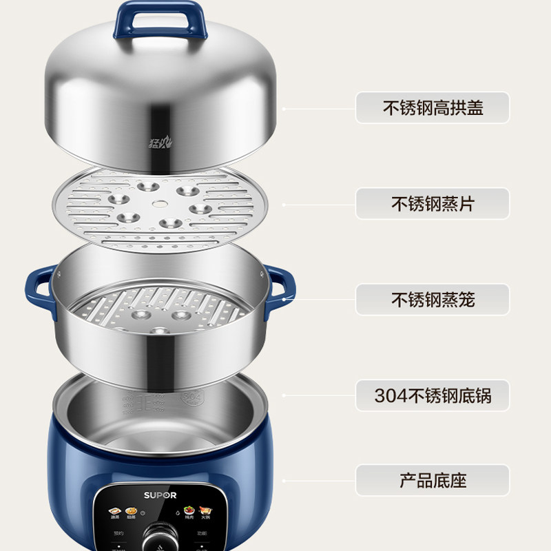 苏泊尔电蒸锅ZN28YC88家用多功能大容量不锈钢用全自动炖蒸煮火锅
