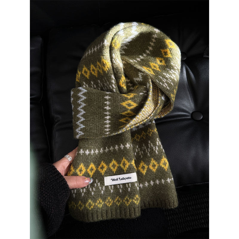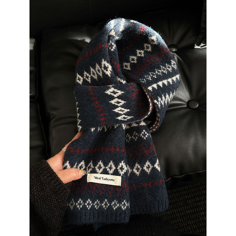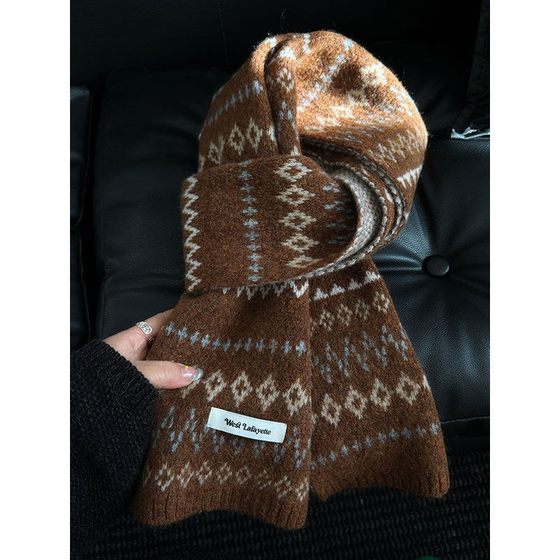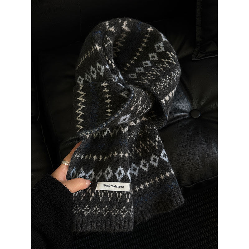 2026韩系费尔岛风提花雪花刺绣针织围巾情侣款保暖毛线几何棉围脖
