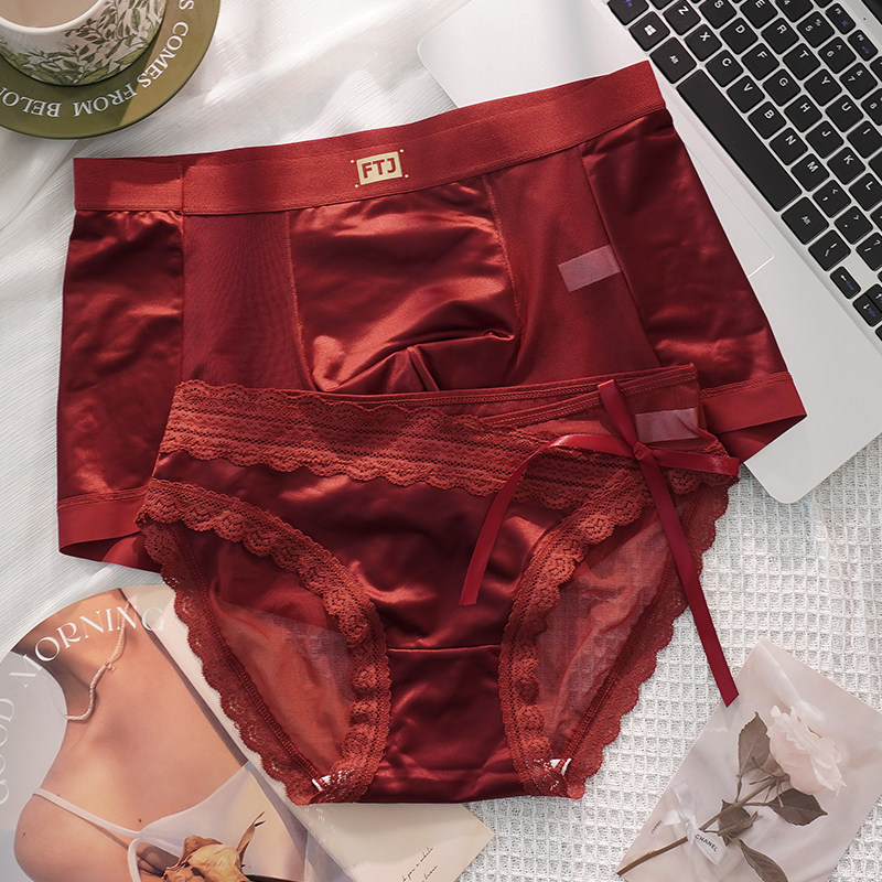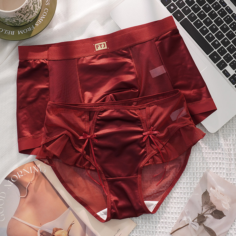 甜米家2条装情侣内裤红色结婚本命年一男一女内衣冰丝蕾丝套装
