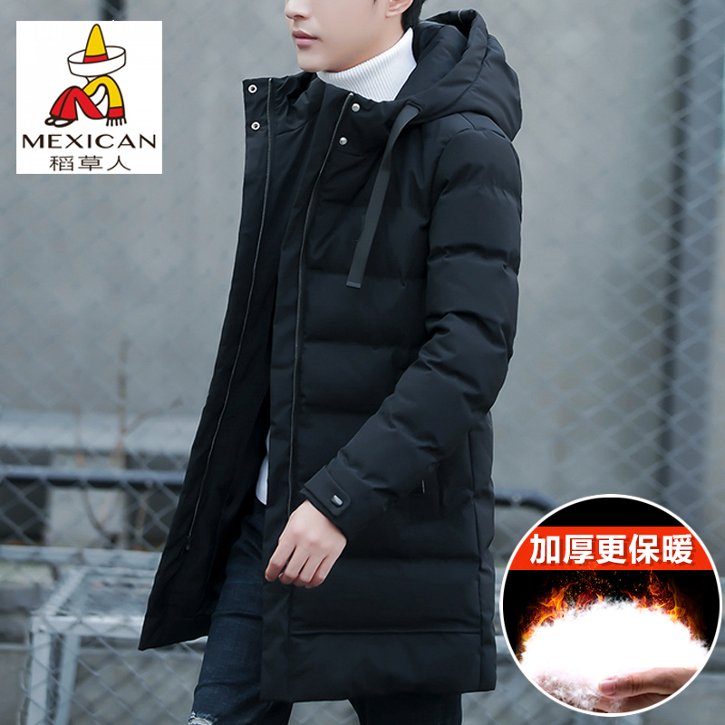 稻草人冬季中长款羽绒服男士2024年新款加厚保暖外套潮牌棉衣男