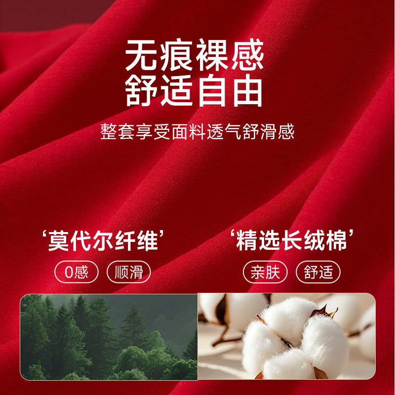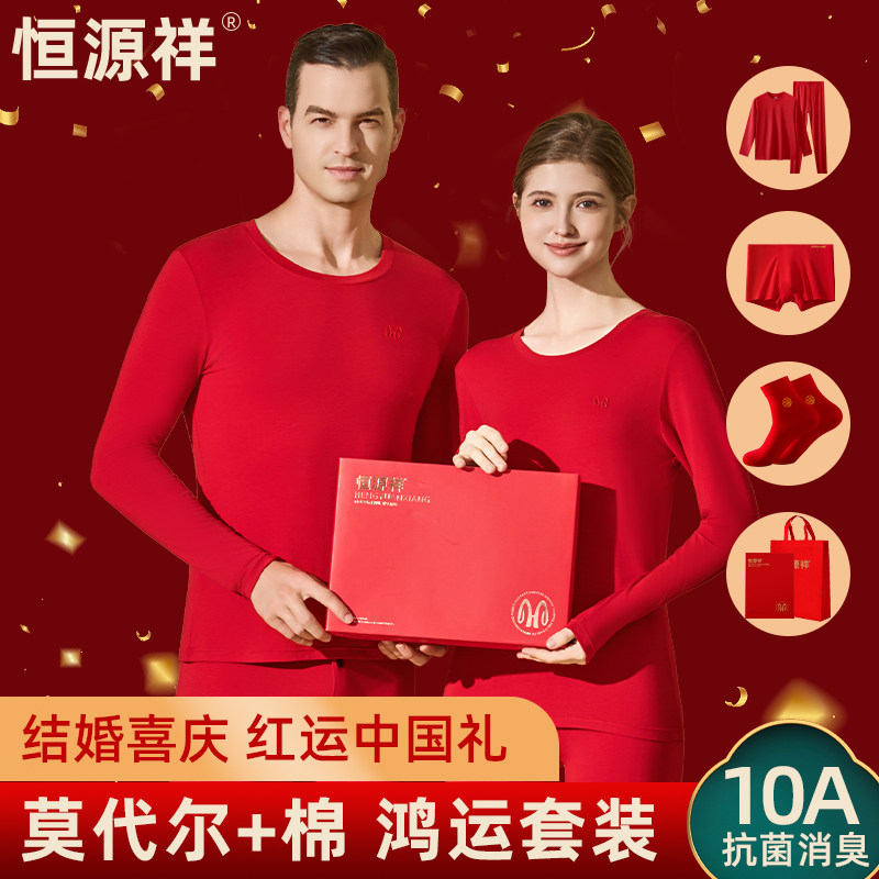 恒源祥本命年保暖内衣女2026马年红色莫代尔秋衣秋裤男士结婚礼物