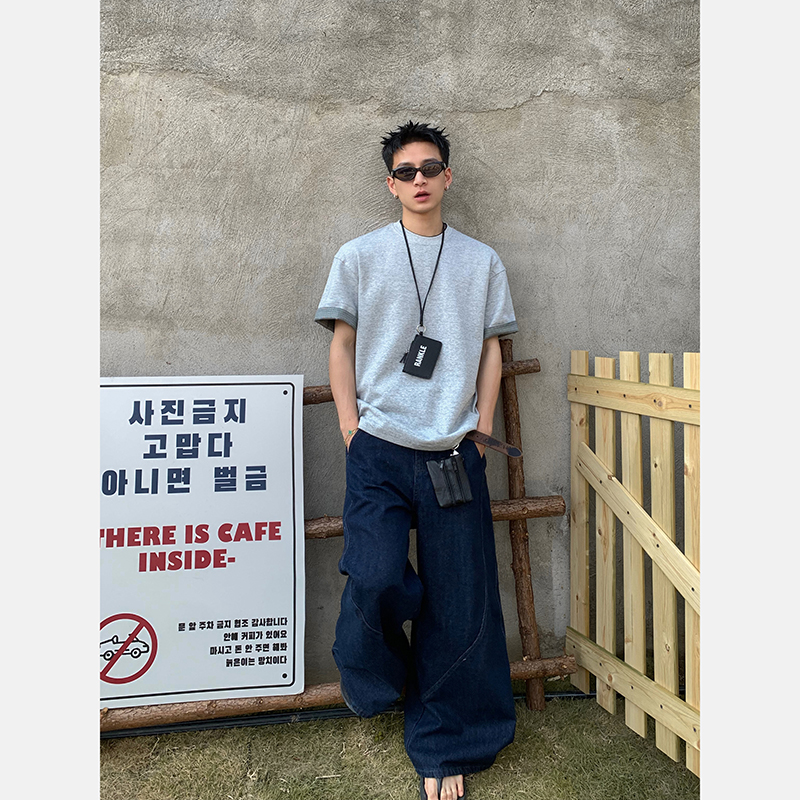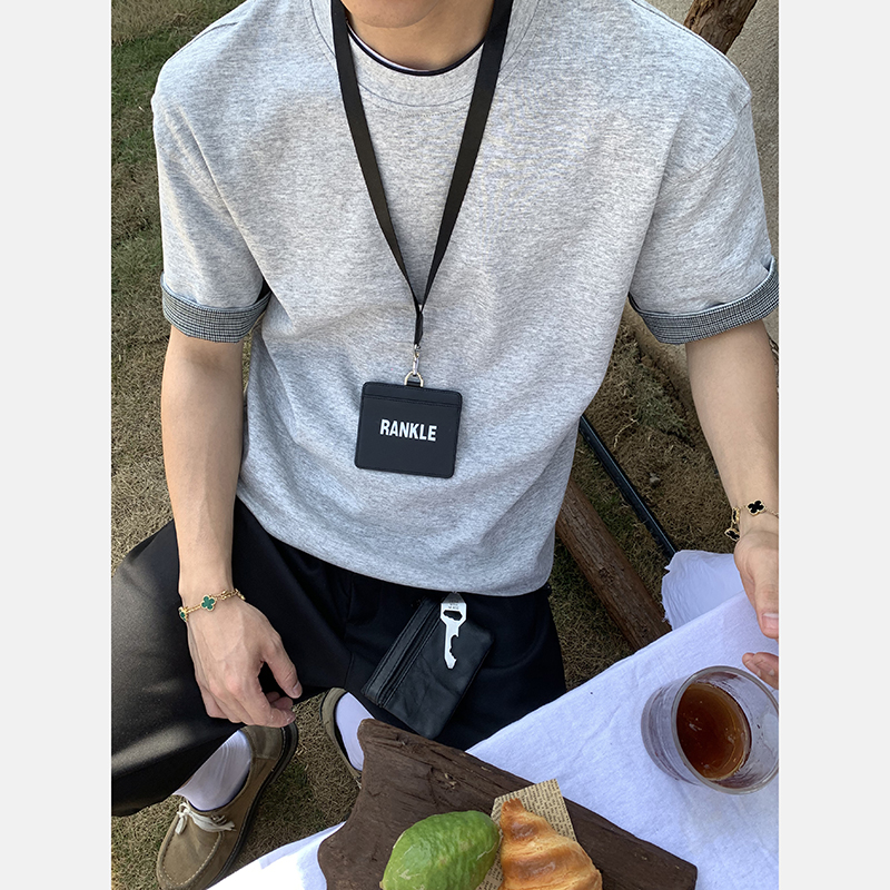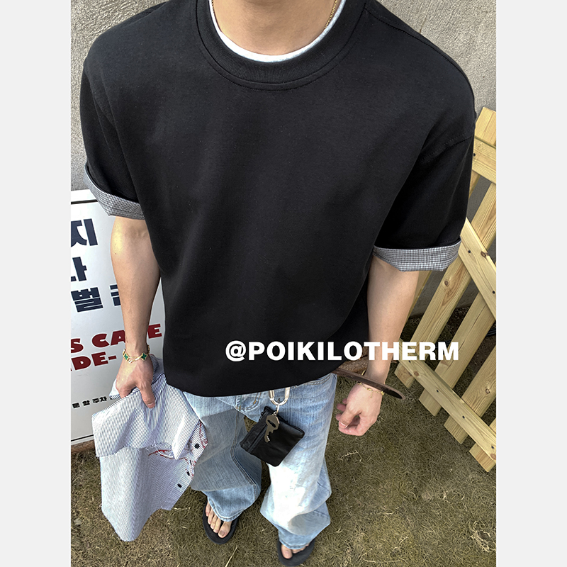 PLTH*夏季美式复古格子拼接短袖T恤男假两件老钱风设计感休闲上衣