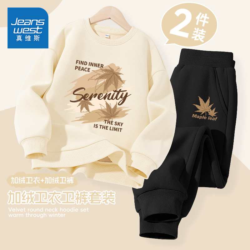 真维斯童装男童卫衣秋冬款儿童冬季加绒加厚保暖两件套男孩冬装潮