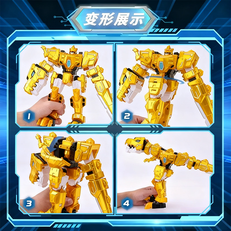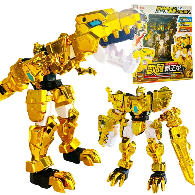 心奇爆龙战车X2金色霸王龙汽车变形机器人暴龙合体儿童玩具战斗机