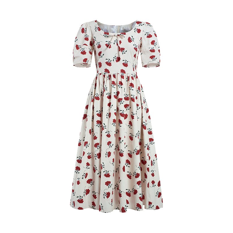 HeyDress法式方领扶桑花连衣裙