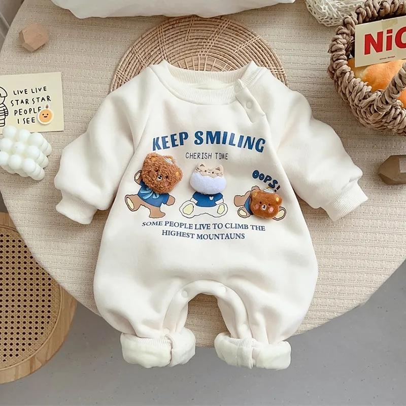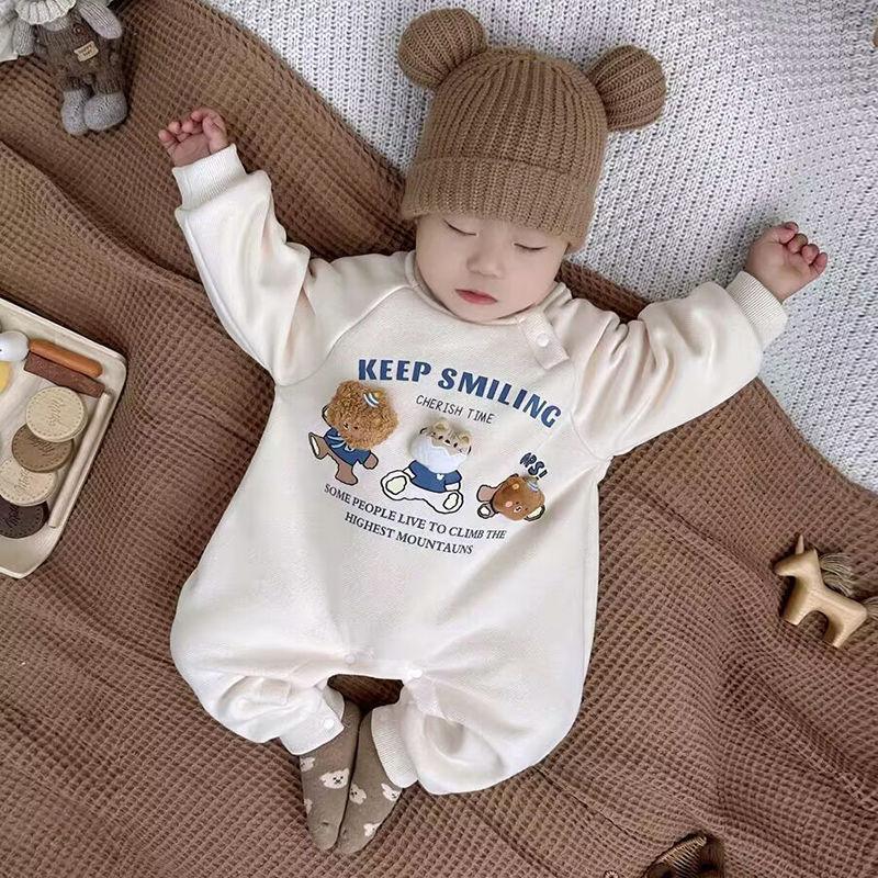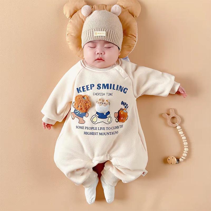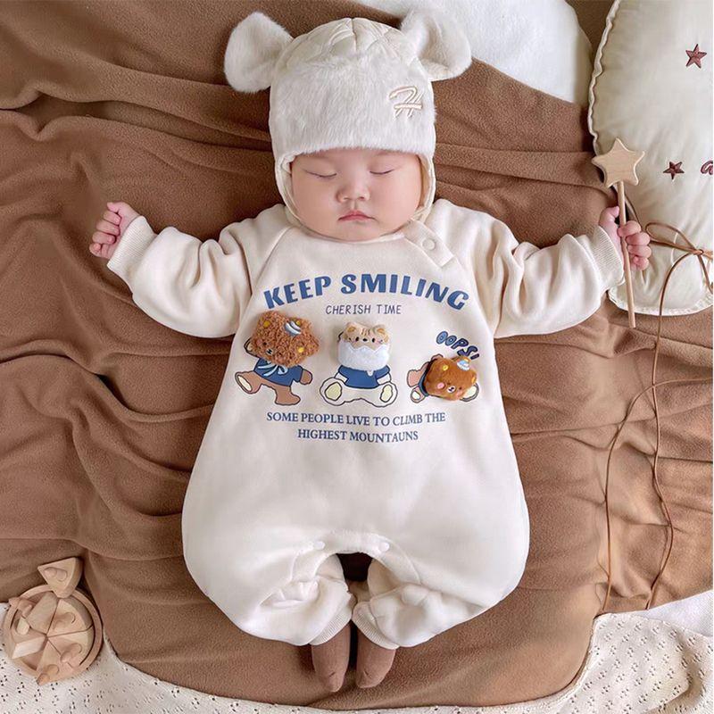 加绒保暖棉男女宝宝连体衣春装秋冬季新生婴儿衣服睡外出穿套款