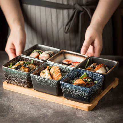 新款陶瓷盘小吃零食碟盘干果坚果盘客厅糖果碟水果竹木托盘拼盘子