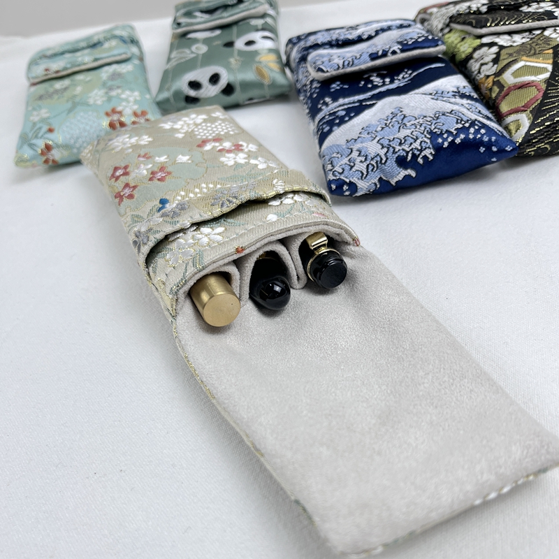 布邑中国风钢笔袋三支装笔袋蓝色锦缎手工笔包便携防划防尘笔套