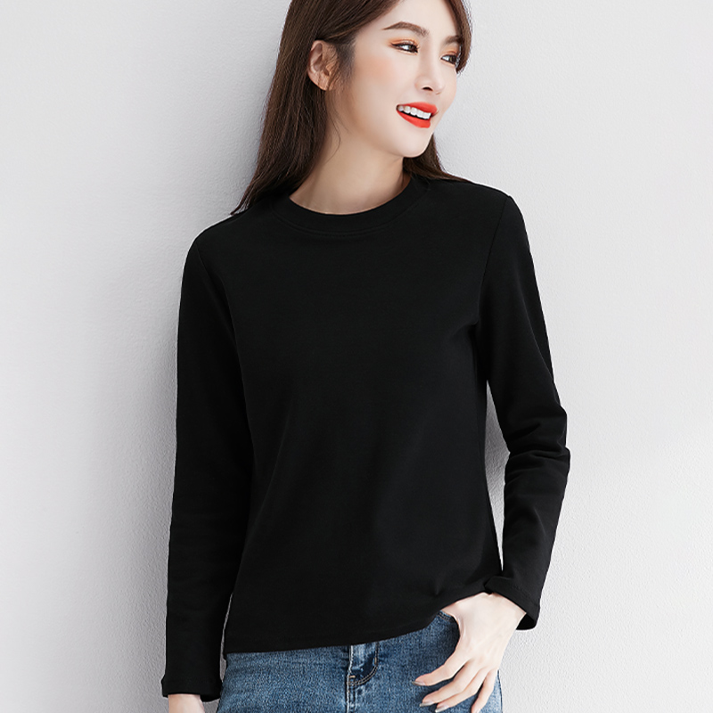 黑色纯棉修身加厚半高领打底衫女内搭秋冬季新款纯色保暖长袖t恤