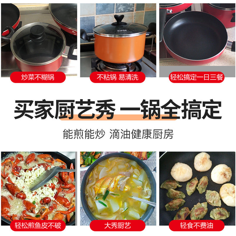 苏泊尔锅具套装全套家用不粘锅三件套组合燃煤气灶专用厨房炒锅