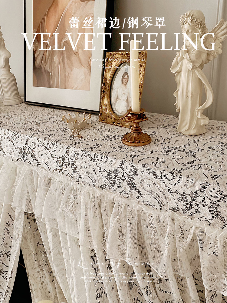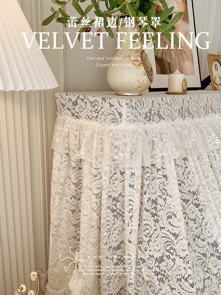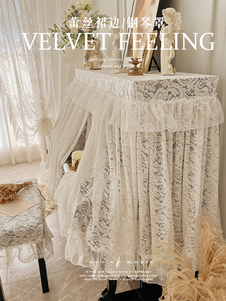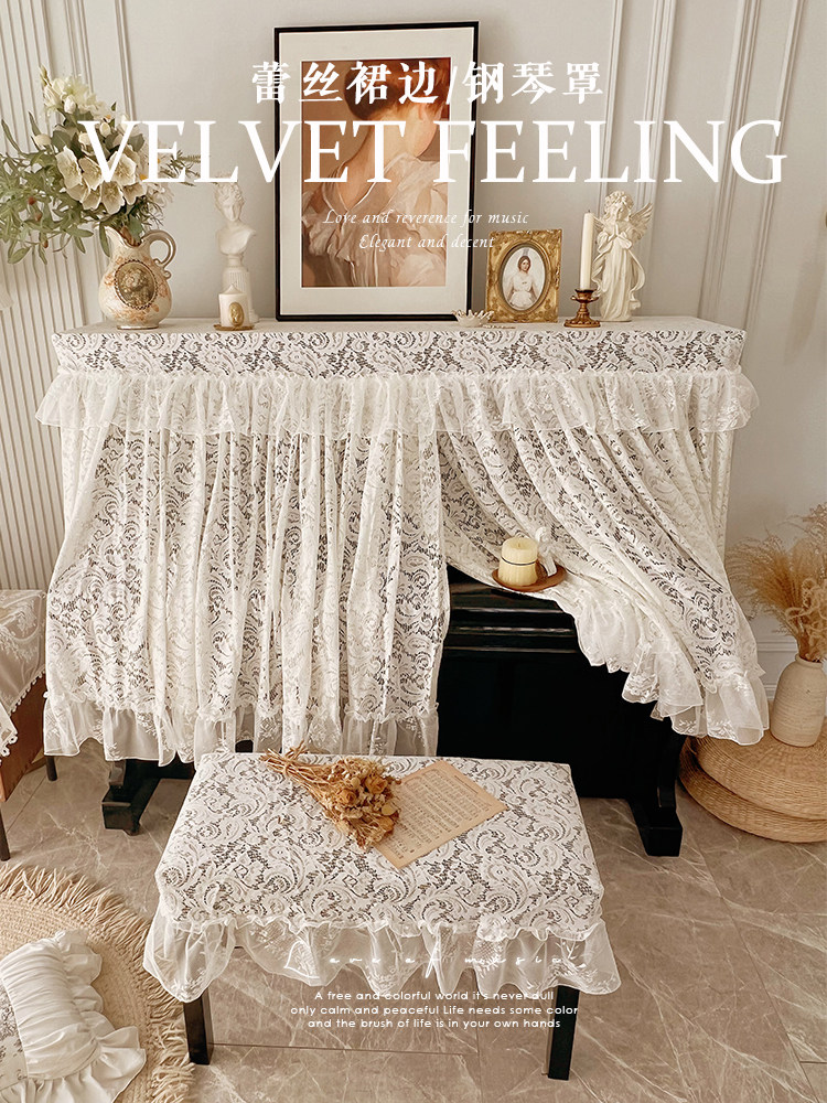 法式钢琴布盖布白色蕾丝电子钢琴罩全罩美式美田园凳罩半罩防尘罩