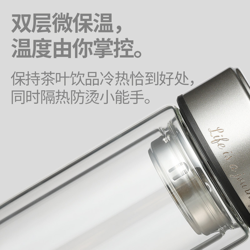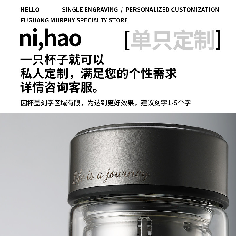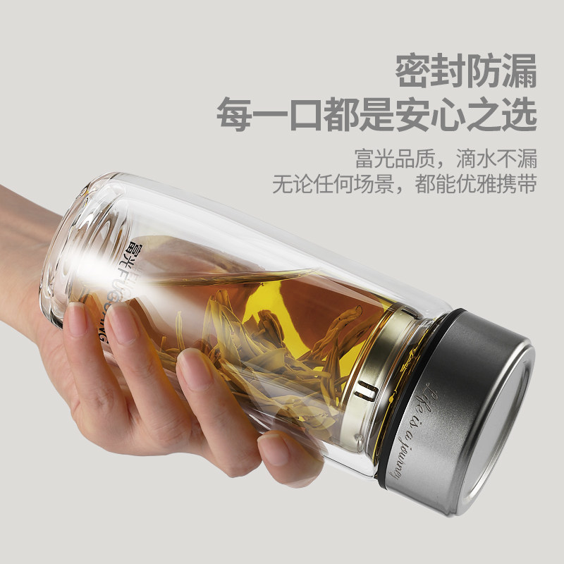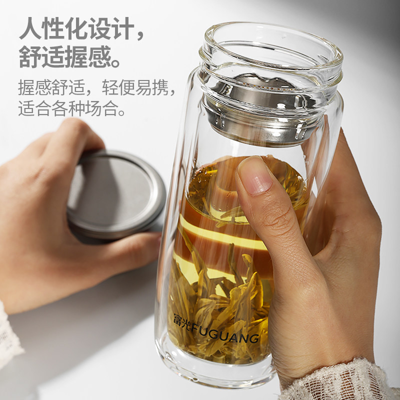富光双层鹅蛋隔热玻璃杯耐高温泡茶杯男士带盖茶水分离水杯子定制