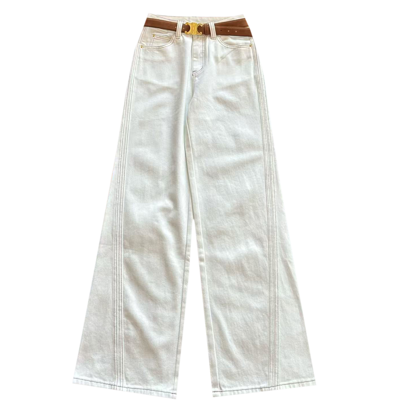 欧货白色牛仔裤女2025新款秋季高腰显瘦直筒裤女小众设计感显高
