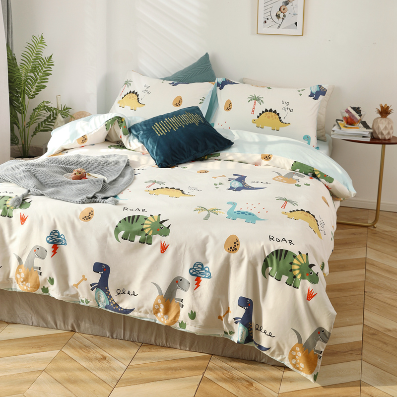全棉卡通小清新四件套床上用品纯棉可爱小恐龙儿童被套床单三件套