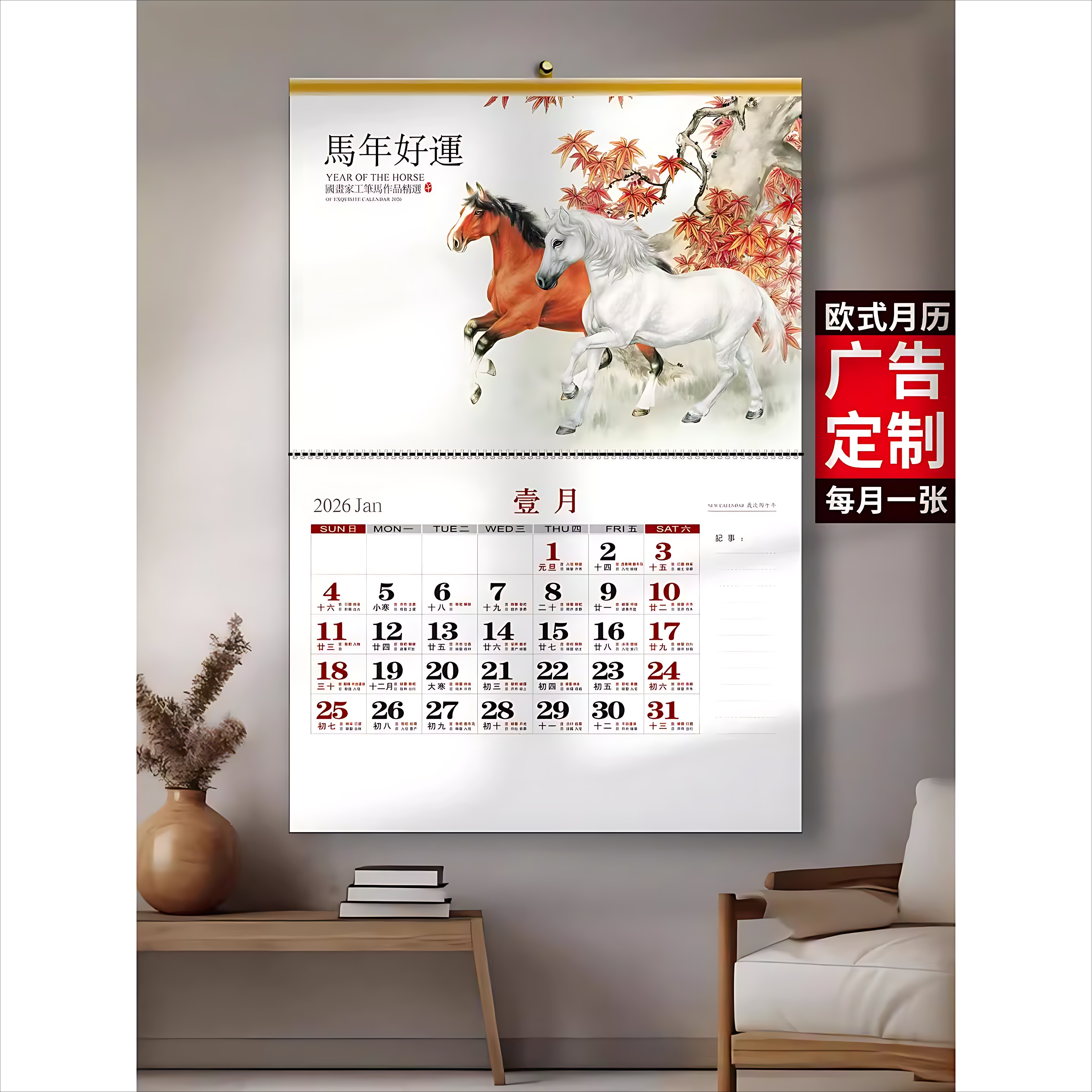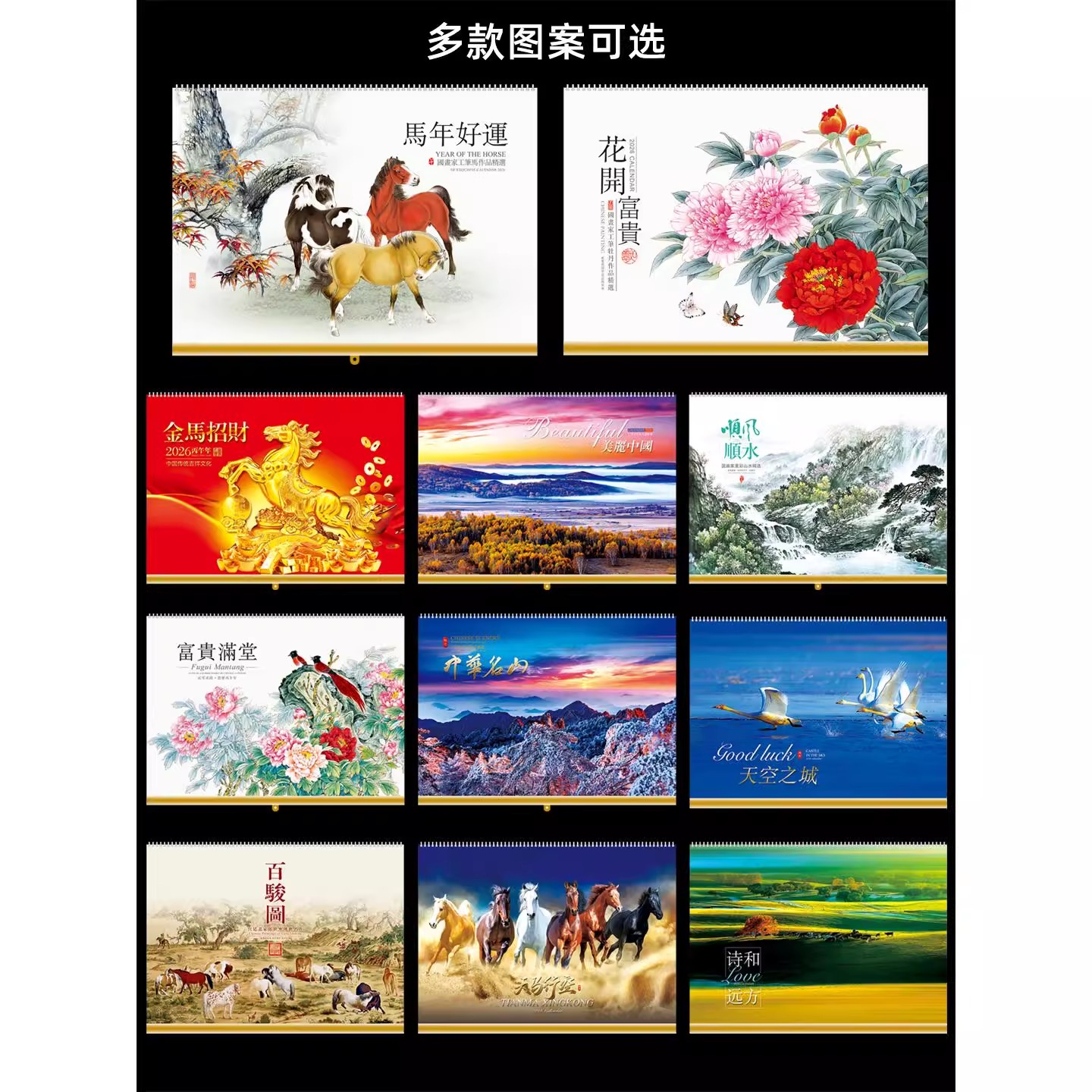 2026马年13张挂历加厚欧式日历铜版纸风景生肖国画家用大号挂墙月历新年装饰 每月一张 定制企业LOGO