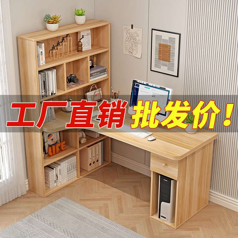 书桌书架一体书柜组合家用卧室简易电脑桌台式学生转角学习写字桌