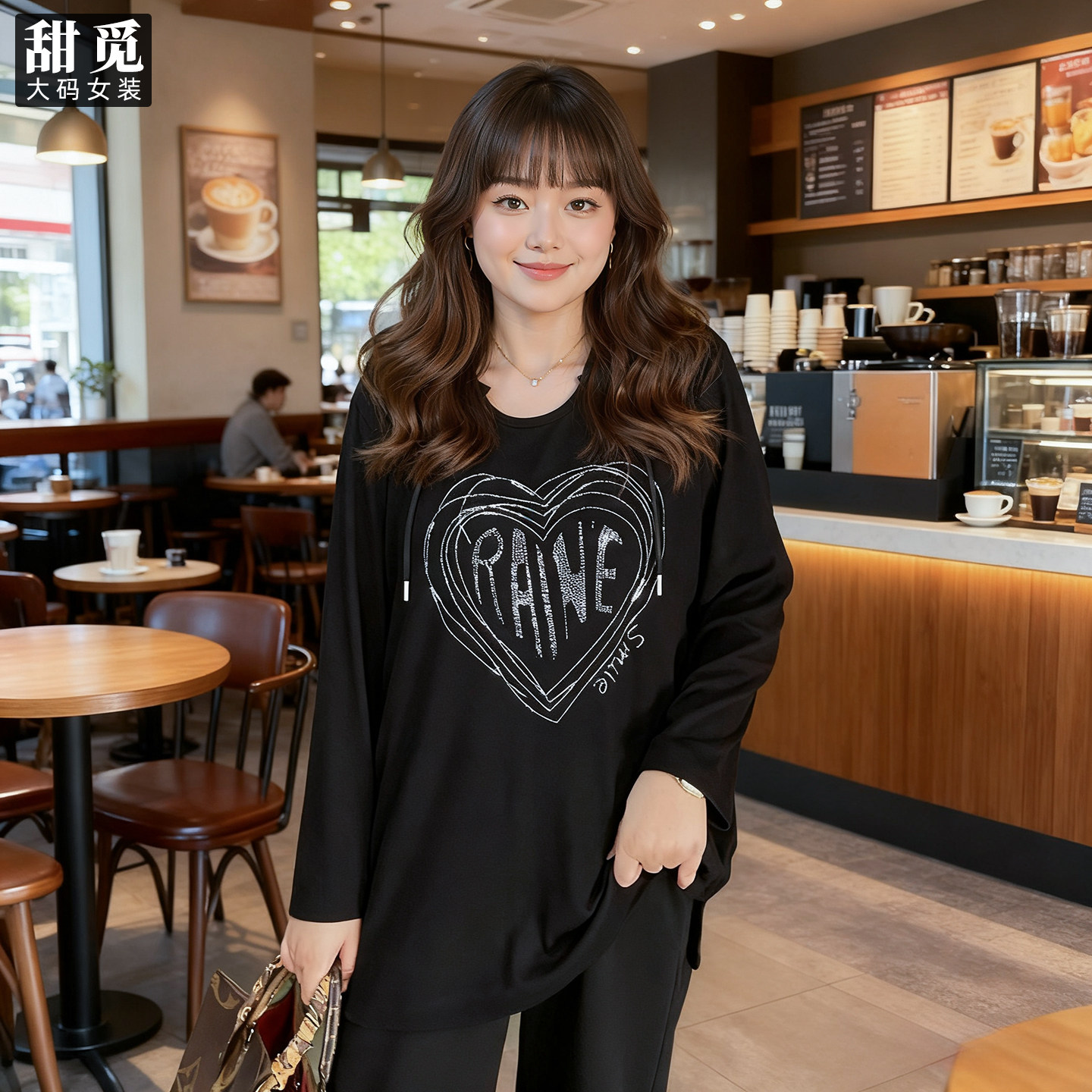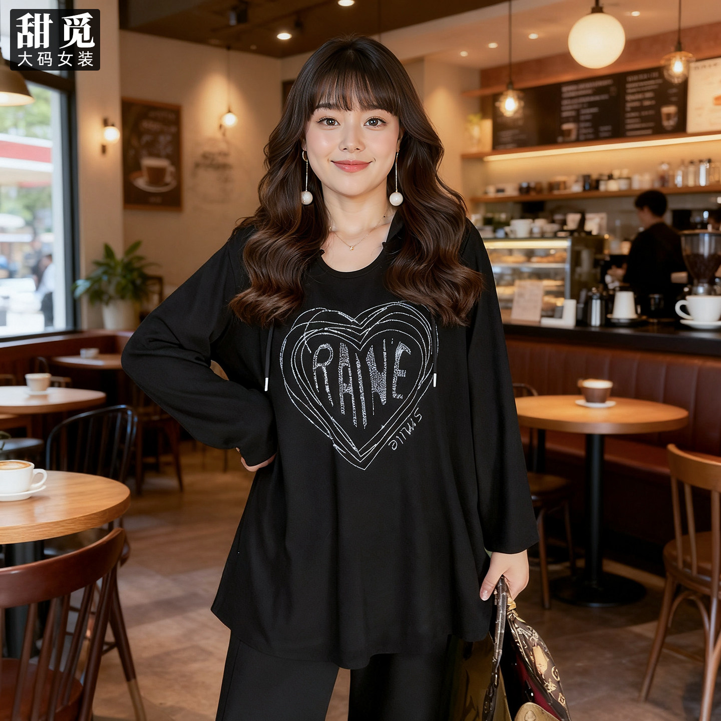 甜觅特大码女装2025秋装胖mm300斤精致闪银中长款宽松连帽针织衫