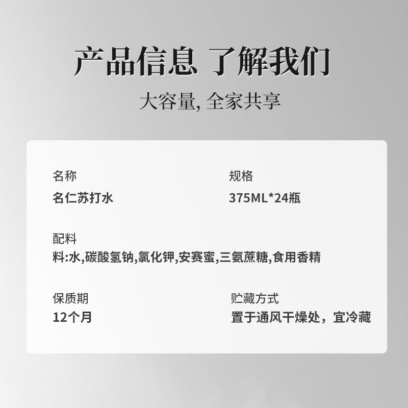 甄选名仁苏打水375ml0糖0卡0脂备料碱性饮用水原味气泡弱碱家庭装