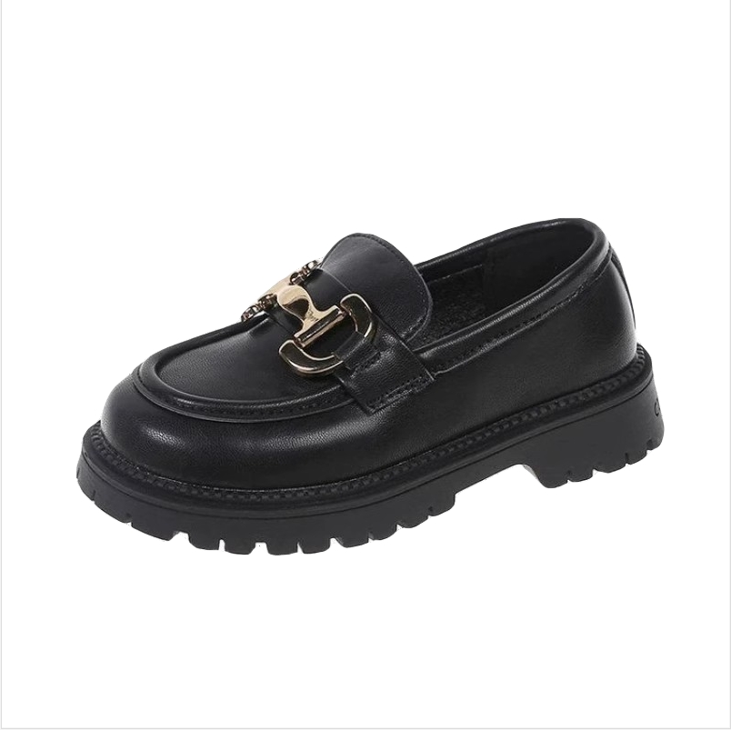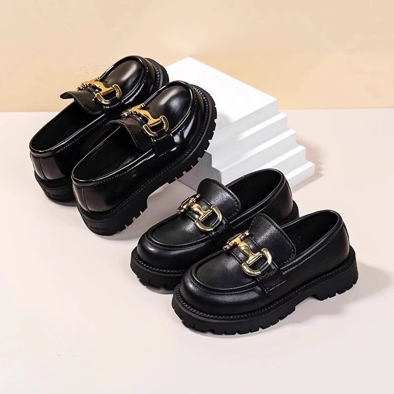 真皮女童小皮鞋2025春秋新款儿童软底乐福鞋黑色洋气英伦豆豆单鞋