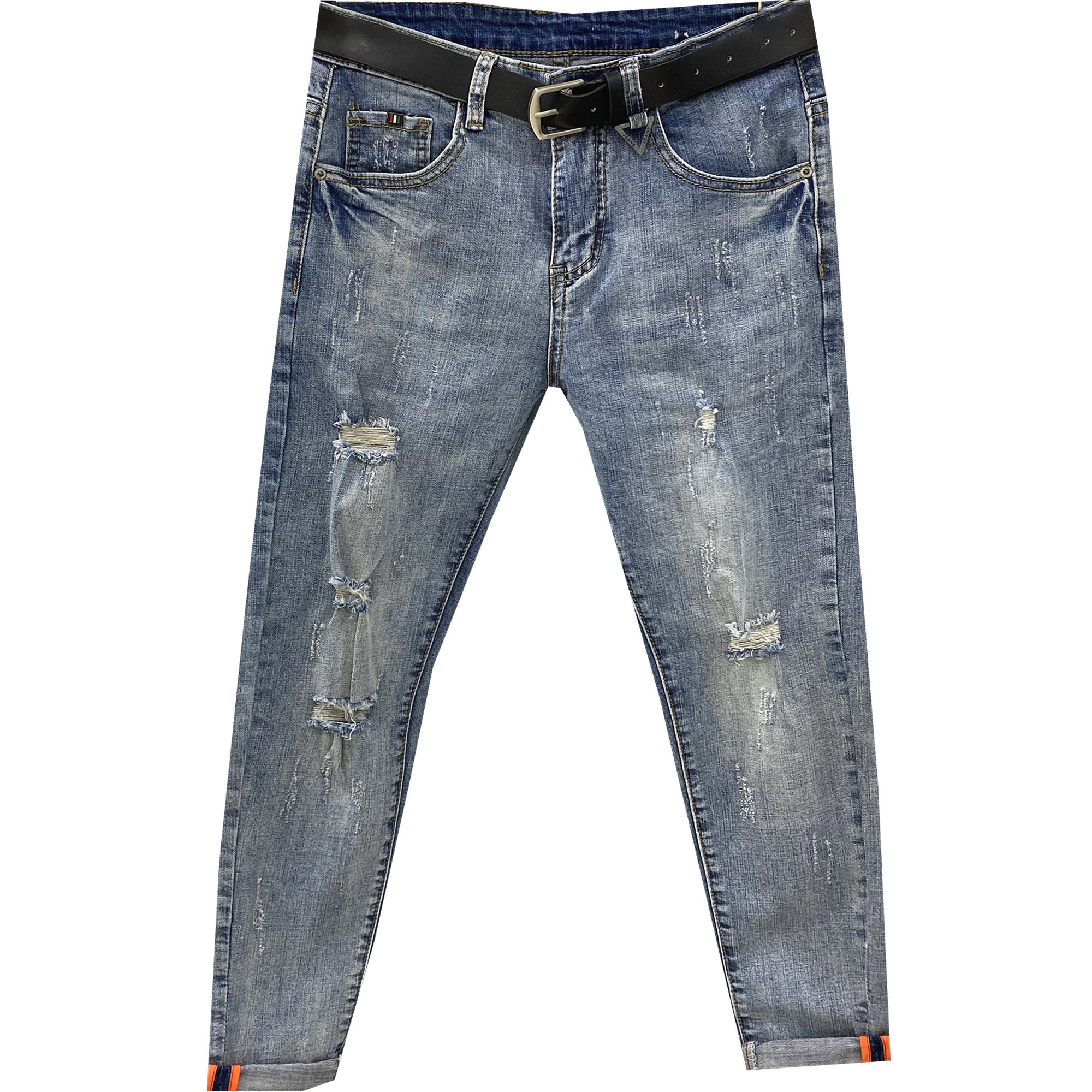 个性破洞浅蓝猫须抓痕修身小脚九分牛仔裤男夏新款潮青年学生百搭