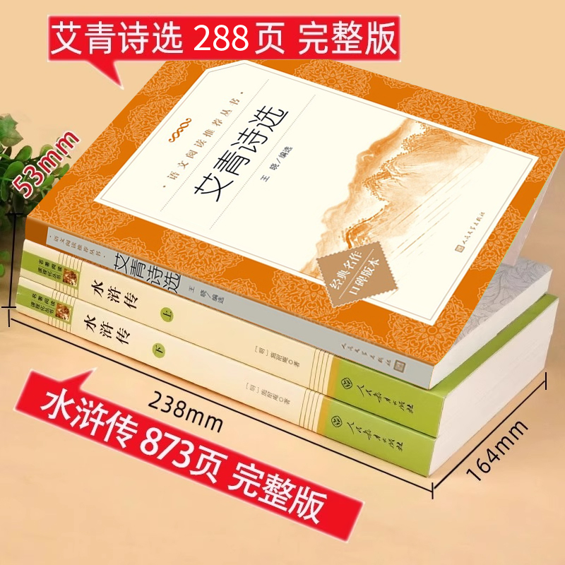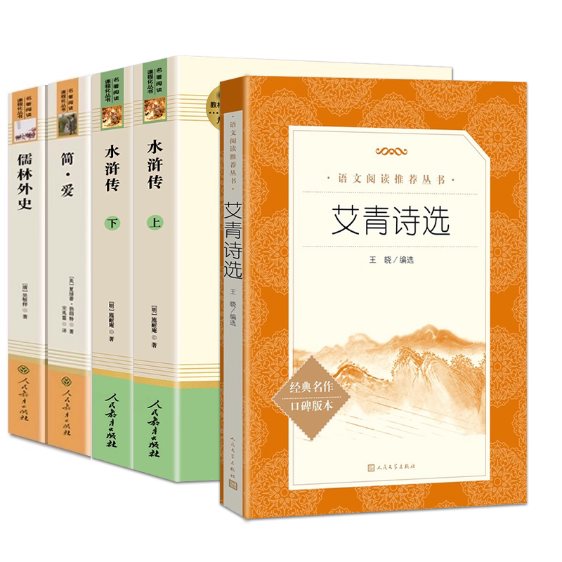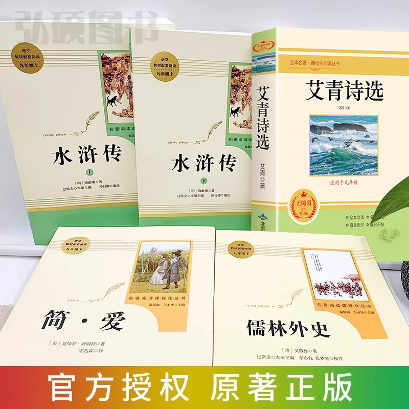 九年级课外阅读书籍必读儒林外史简爱艾青诗选和水浒传正版原著完整版唐诗三百首人民教育出版社初三上册下册课外书九上人教版名著